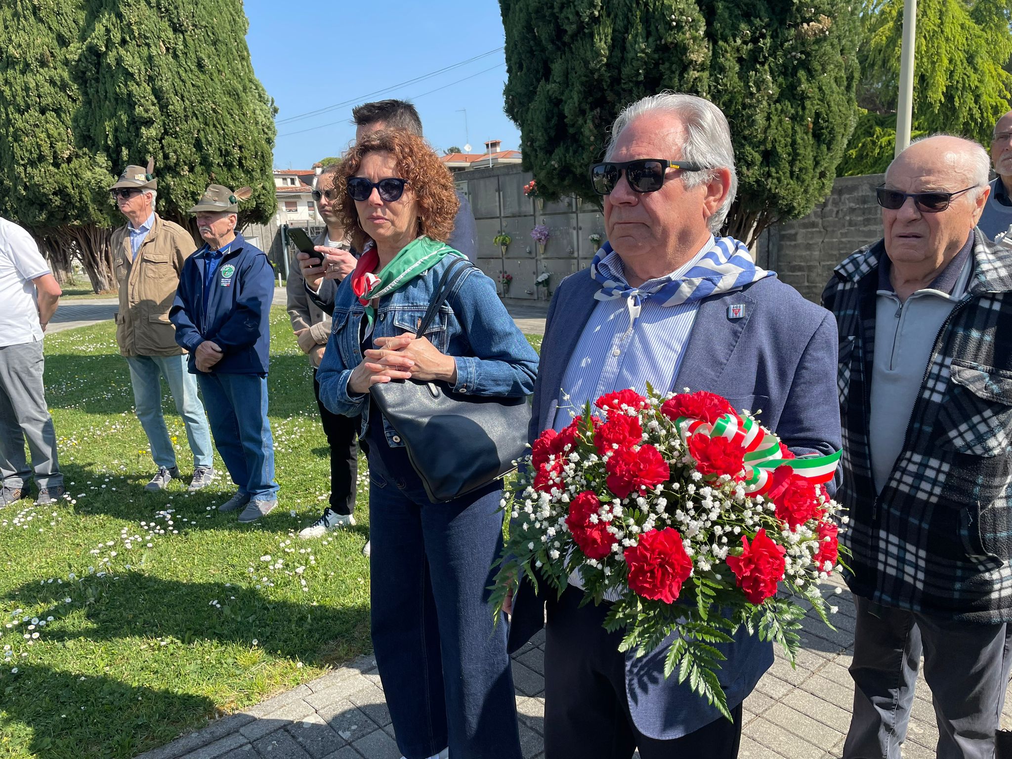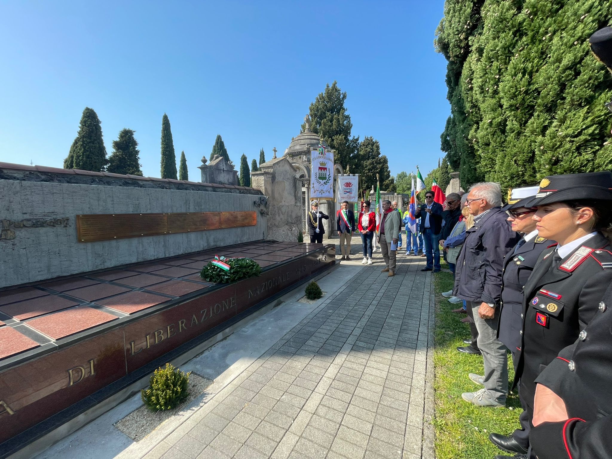 Al Cimitero Civile, Gastone Martinuzzi ha ricordato la storia dietro all’Ossario dei Caduti Partigiani, costruito anche con fondi privati per ricordare tutti i caduti ronchesi – di cui 24 riposano proprio lì – e le discussioni politiche che ne ritardarono l’inaugurazione. Poco lontano, sempre nel cimitero civile, riposa anche Vjekoslav Andrijic, partigiano dalmata ucciso in un’imboscata a seguito di una soffiata a Soleschiano. «Come dalmata ha sofferto molto come suoi conterranei la violenza fascista», ha ricordato Libero Tardivo, presidente della locale sezione dell’Anpi. «Qui a Ronchi aveva trovato una differenza tra fascisti e italiani. La nostra è una terra di frontiera, di culture e tradizioni e usi che si compenetrano. Il suo sangue assieme a quello dei nostri nonni ha nutrito questa terra della quale noi siamo figli. Dobbiamo valorizzare le memorie che ci hanno dato ricordando da dove veniamo per continuare nel loro messaggio di libertà, democrazia e partecipazione».