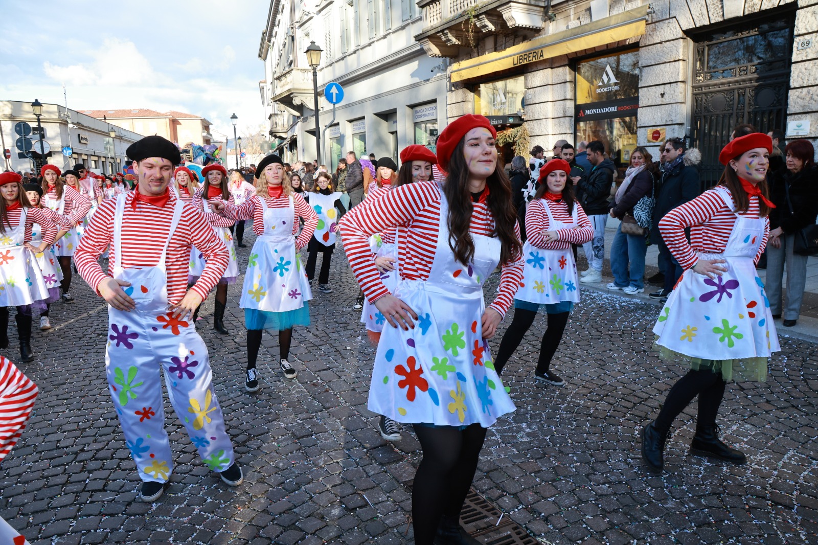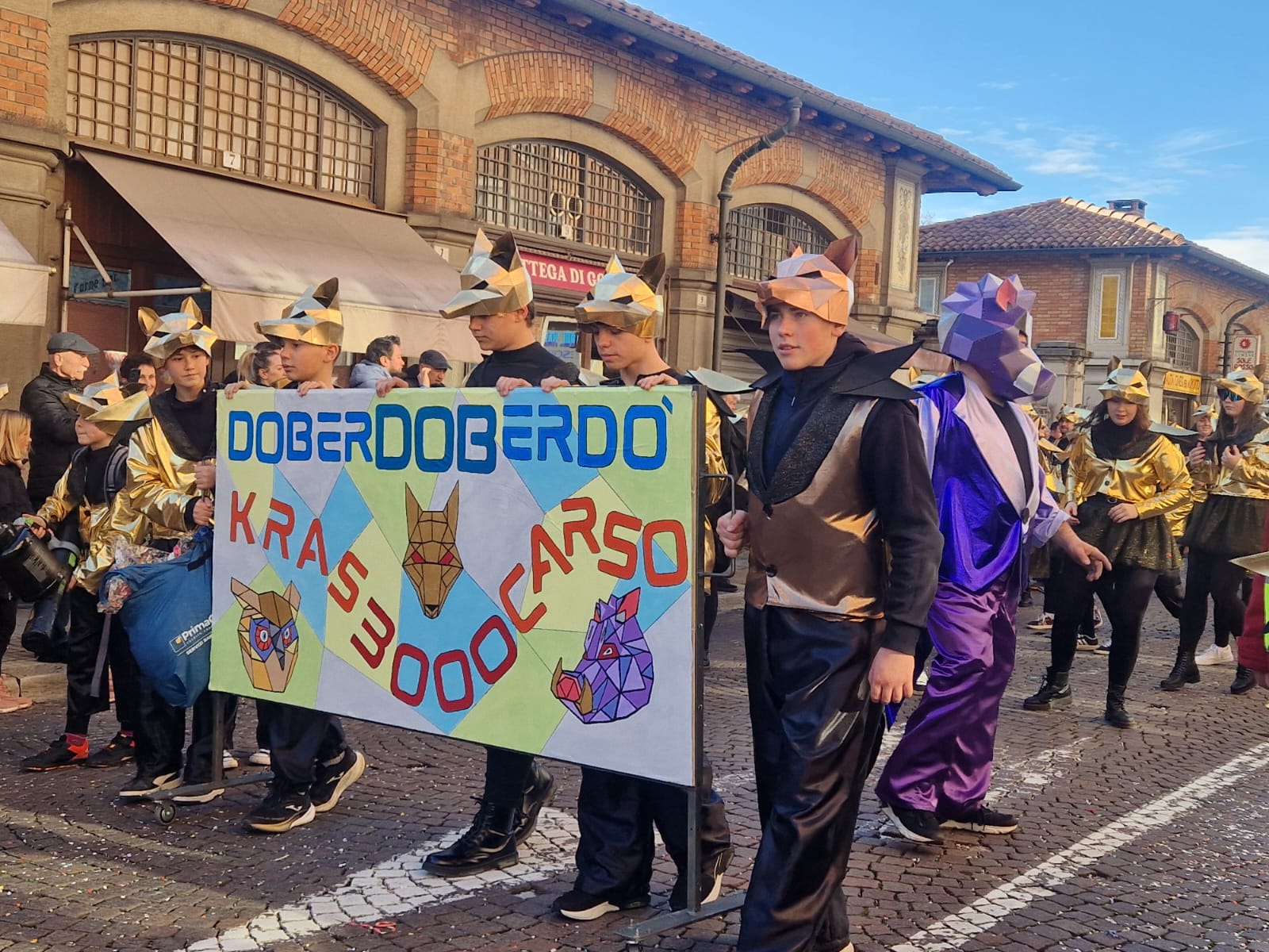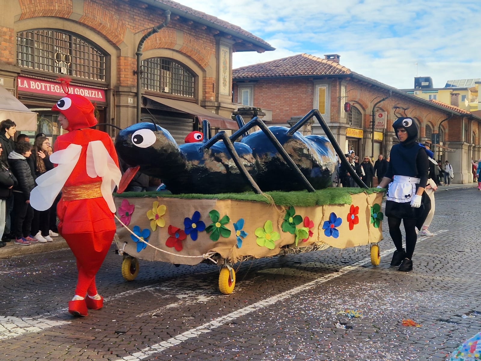 È stata un’autentica pioggia di gioia e coriandoli baciata dal sole, quella che si è riversata in città per la 36esima edizione del Carnevale Goriziano. Una sfilata iniziata alle 14 di oggi – 8 febbraio – e confluita infine all’ex mercato, nella cui rinnovata veste sono stati realizzati di recente i bagni pubblici. Quasi duemila i figuranti impegnati nei balli o a manovrare le opere di cartapesta, che fra girotondi e lanci di caramelle hanno portato un corale messaggio di pace e riconciliazione per dire “no” a tutte le guerre. Il caleidoscopio di allegria si è arricchito con gruppi provenienti dal vicino Friuli, ma in primis dalla comunità slovena confinante e dal Carso: «Come di consueto, anche quest’anno abbiamo registrato un record di presenze, con diciotto gruppi e dodici carri anche provenienti dalla Slovenia – conferma l’assessore alle Attività produttive Luca Cagliari – ripetendo l’esperienza del carnevale transfrontaliero dello scorso anno. Un grande successo ottenuto anche grazie all’organizzazione con la Pro Loco Gorizia, che dedica tanta attenzione a famiglie e bambini». Il giro è partito da via Boccaccio – dove i carri si sono sistemati già in mattinata – per poi proseguire su corso Verdi, sfilando innanzi alla giuria collocata ai Giardini Pubblici.