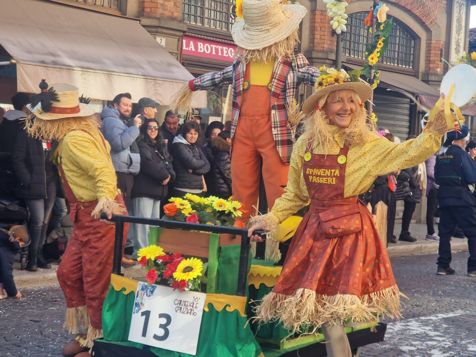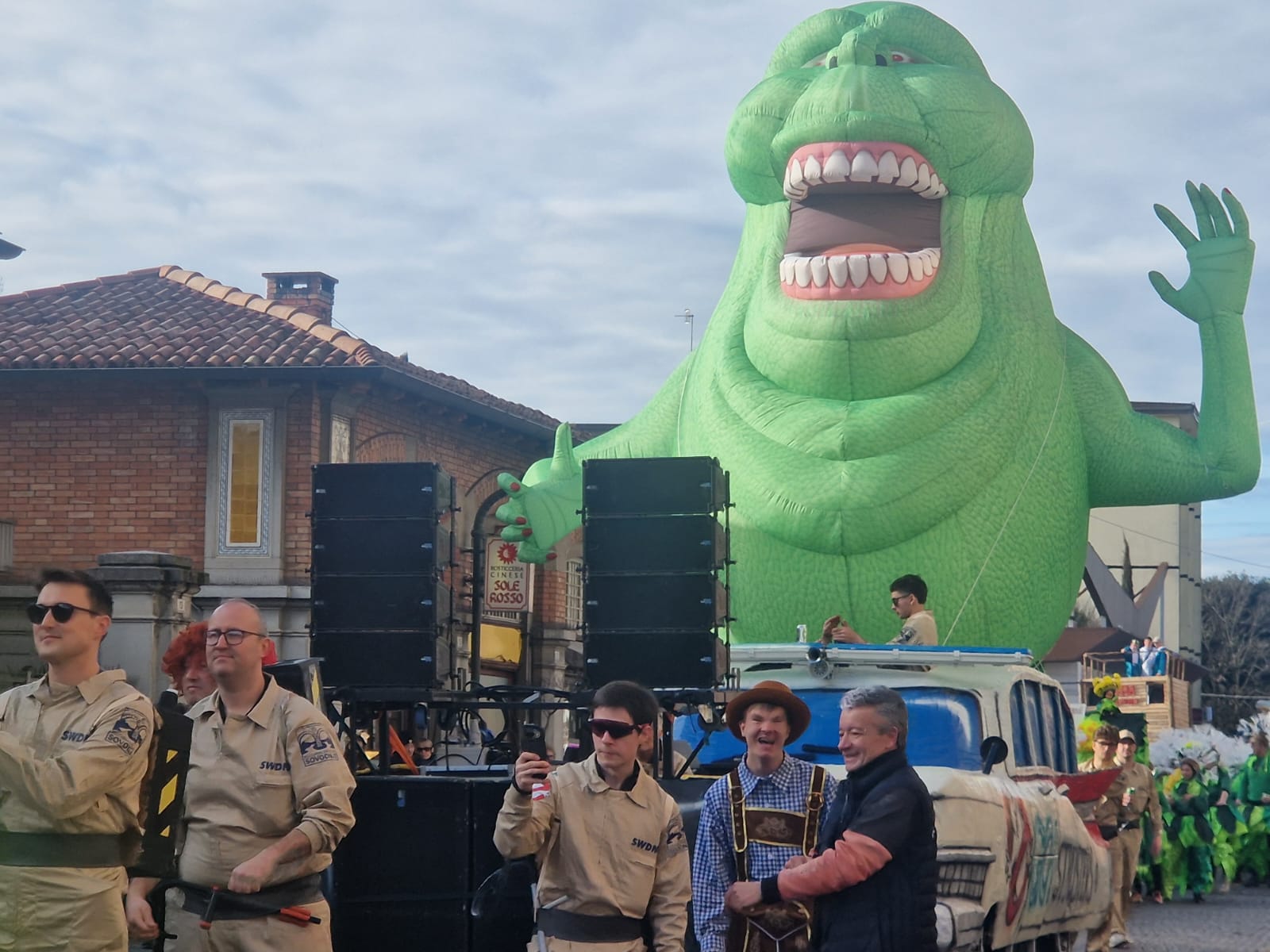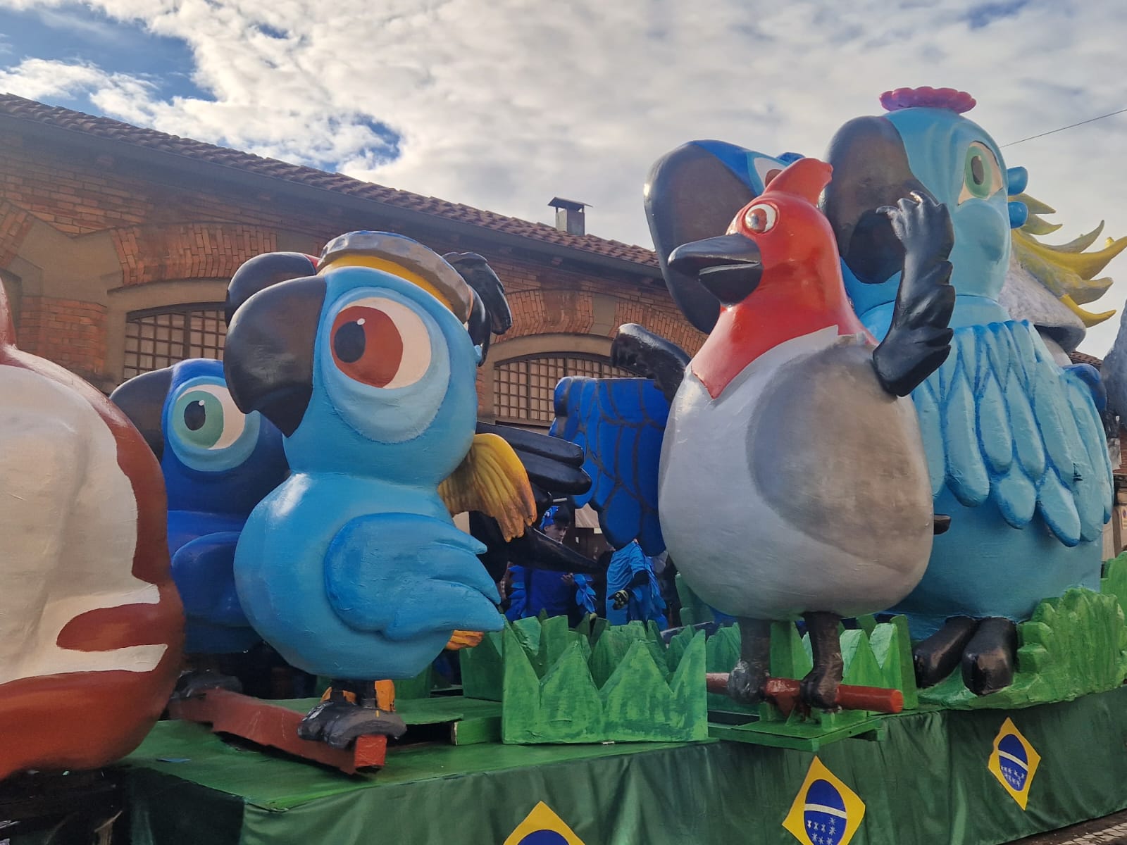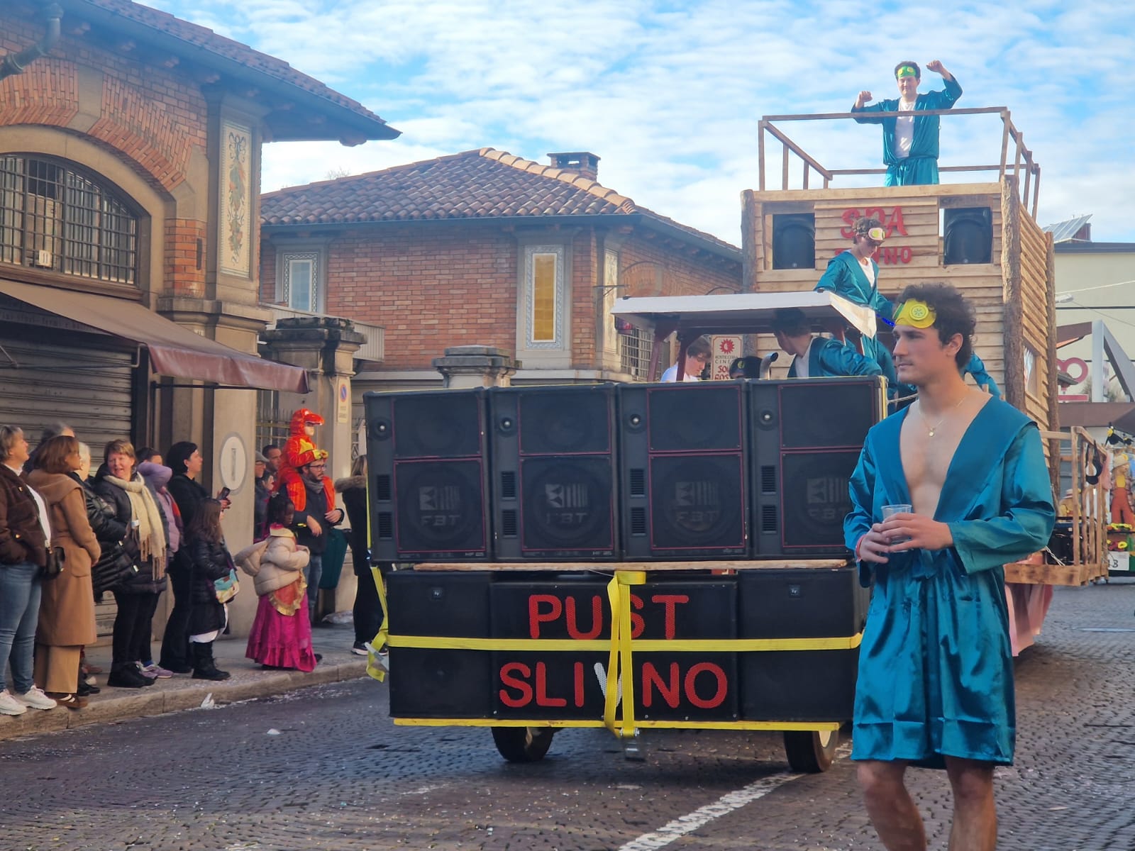 Direttamente da San Pelagio sono sbucati vasi fioriti e farfalle, perché «in un mondo dove tutto sta andando a rotoli abbiamo bisogno di cose semplici e belle». Come i Sette Nani – per l’esattezza trenta – di Colloredo di Prato, presenti con il gruppo allegorico “Fasin Fieste”: «Il nostro scopo è stare assieme e divertirci – assicura il referente Gabriele Del Bianco – condividendo una passione che comincia nel momento in cui decidiamo il tema e lo realizziamo in legna e cartapesta per passare le domeniche». Un carretto di quattro metri seguito dal corpo di ballo con Grandangolo, Trampolo, Birbantolo, Baffolo o il Nano single, a precedere il carro di otto metri con un nano che esce dalla miniera reggendo un diamante. L’associazione culturale Skala di Gabria si presenta invece con Aladino e il motto “Aladin, risolvi ‘sto casin!!” contro «guerre, crisi e occupazioni» di cui «sinceramente gavemo pieni i maroni». Su in cima al carro è montata la lampada, da cui sporge proprio lui, Aladino, che con cuffia da nuoto azzurra e braccia possenti è pronto a realizzare la magia. Brioso e danzante è invece “Blu” di San Floriano del Collio, che fra pappagalli e squadre di ballerini presenta uno strabiliante Carnevale di Rio. Dai pappagalli passiamo agli uomini delle caverne, scienziati ed esploratori, con “La storia del mondo” di Turriaco, seguito dagli attualissimi acchiappa fantasmi di “Go! Stbusters 2025” di Savogna d’Isonzo, che a suon di musica dei “Ghostbusters” ballano dietro a una sorprendente riproduzione del Go!Pharus, ammonendo: «Gorizia ha dimostrato di saper brillare, non lasciamo che finita la festa siano i fantasmi a comandare».