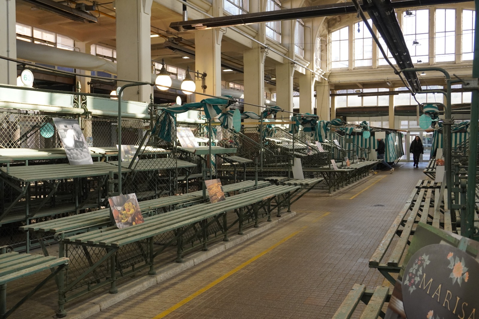 Nel tentativo di riempire gli spazi vuoti sono state appoggiate delle fotografie, finestre sui prodotti e le persone “di una volta”. Ma ciò che preme all’interno delle mura del Mercato Coperto non è la voglia di un nostalgico ricordo, ma la necessità di far vivere un’arteria essenziale e costituente della città, per la città. Si vedono appesi i tondi verde acqua di Go! 2025, simbolo che il Mercato è riconosciuto come uno dei luoghi che rappresentano Gorizia. Ma non pare paradossale e ipocrita il fatto che consigliamo ai turisti un luogo che parla di noi, ma che sta sparendo sotto i nostri occhi?