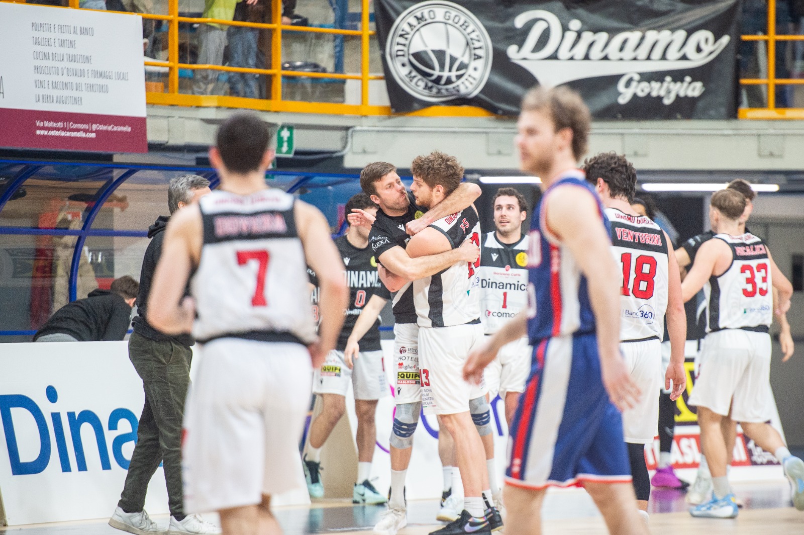 Determinante, in quel momento, la reazione della Dinamica che non ha perso lucidità. La tripla in transizione di Giacchè, con cui i goriziani sono andati al riposo sul 42-40, ha segnato la svolta della partita. Nel secondo tempo la squadra di casa ha alzato ulteriormente il ritmo, riuscendo a mantenere quasi sempre un vantaggio in doppia cifra fino a toccare anche il +17 con Sertic.