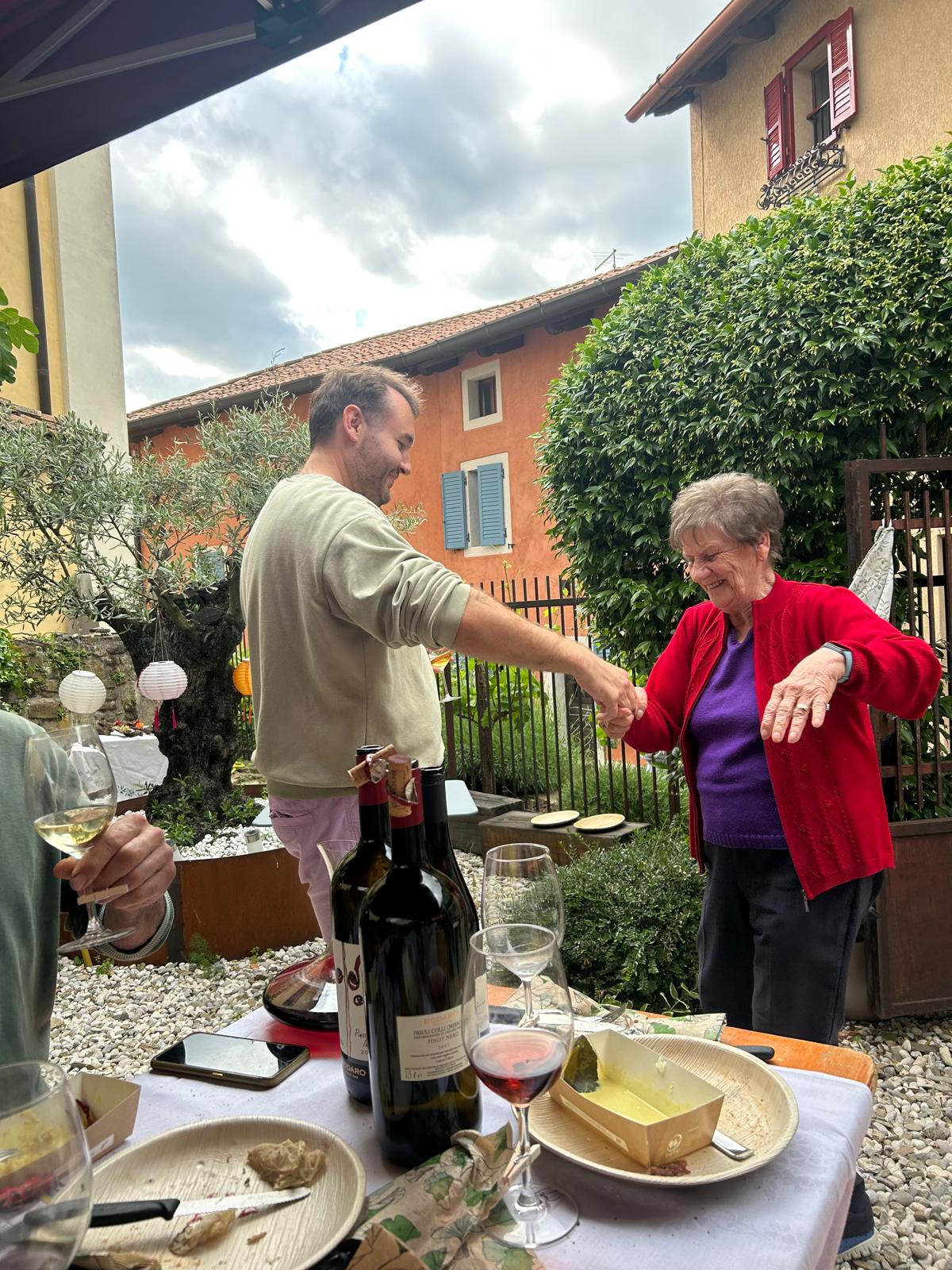 Quirin invece era l'opposto dialettico di Guerrina: era il movimento, l'altrove che sceglie di diventare qui, lo straniero che diventa più locale dei locali. Trentadue anni, bavarese di nascita ma collinare d'adozione. Per vent'anni era venuto qui in vacanza, attratto da qualcosa che va oltre le cartoline turistiche del Collio. Forse era il ritmo, forse la luce particolare che hanno queste colline al tramonto, forse semplicemente il fatto che qui le persone ancora si conoscono per nome e si fermano a parlare per strada.