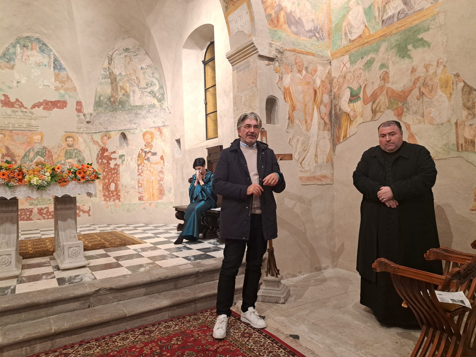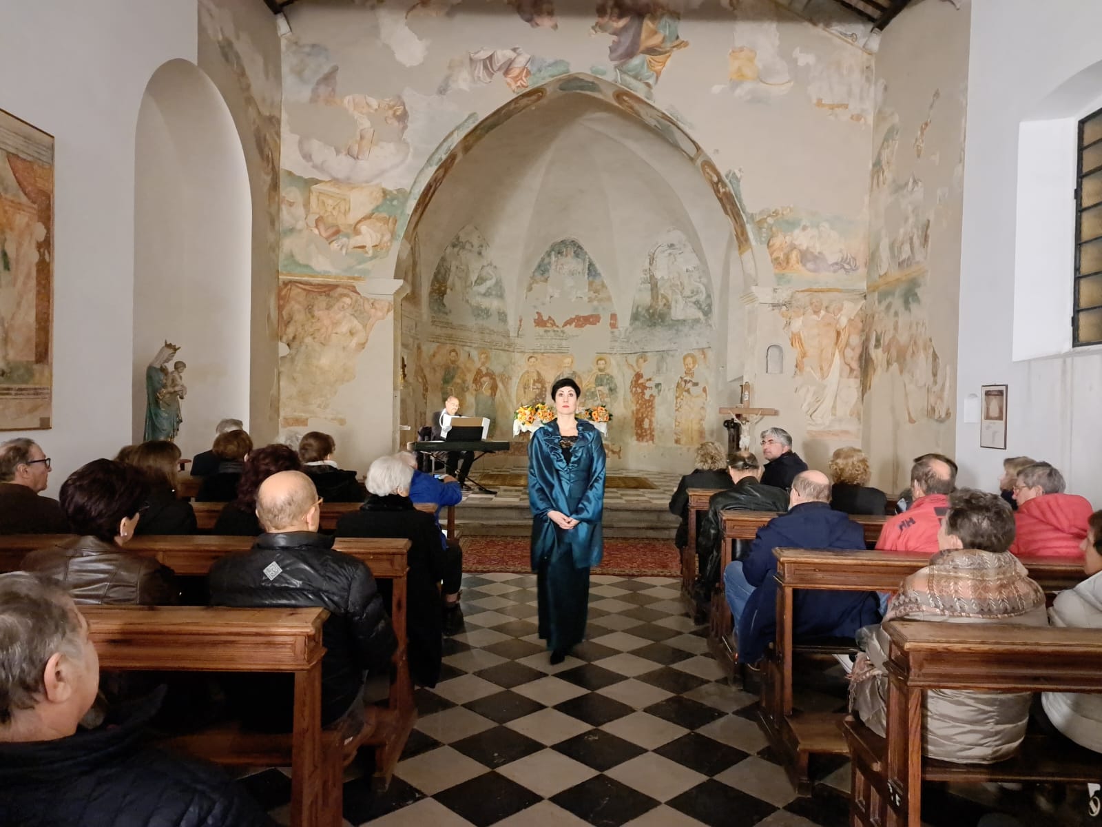 È stata un’inaugurazione suggestiva quella di ieri, sabato 15 novembre, a Fogliano. Niente nastri da tagliare, ma le note del pianoforte e una voce intensa che si alza e risuona fra le pareti affrescate del Cinquecento prima che la luce le sveli in tutto il loro splendore: così la chiesa di Santa Maria in Monte si è presentata alla riapertura dopo i lavori durati quasi un anno.