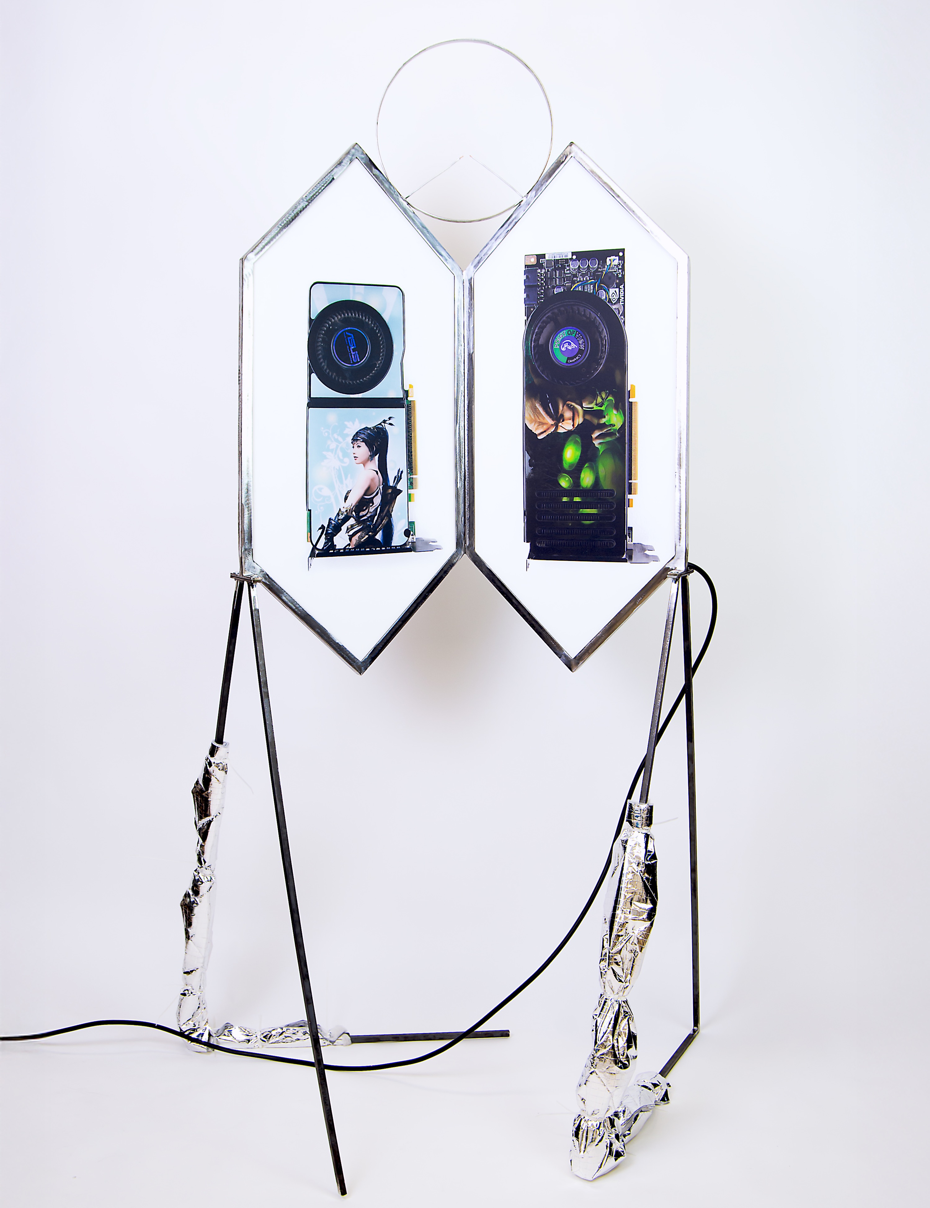 Da questo intreccio nascono le opere in mostra. Giulia Maria Belli di Udine sviluppa una ricerca sul tessile come luogo di memoria e relazione, trasformando materiali di scarto in superfici sensibili e stratificate. Nicola Facchini di Trieste lavora con metalli industriali, rielaborando scarti di alluminio e ottone in composizioni che oscillano tra struttura tecnica e forma scultorea. Anna Marzuttini di Gemona del Friuli costruisce installazioni a partire da residui vegetali e materiali raccolti nel paesaggio, riflettendo sui cicli naturali e sulle dinamiche di rigenerazione. Kristian Sturi di Gorizia, infine, utilizza hardware dismesso e componenti elettronici per creare opere che interrogano il rapporto tra tecnologia, percezione e impatto ambientale.