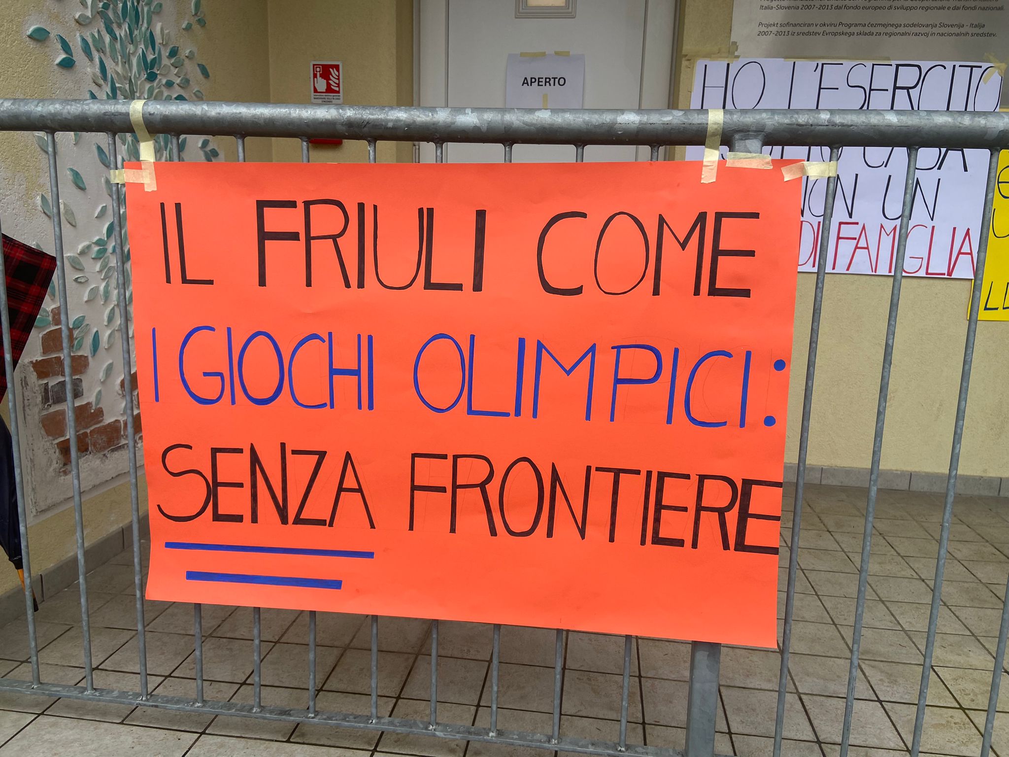 A ridosso del passaggio della fiaccola olimpica Milano-Cortina in piazza Transalpina, alcune associazioni del territorio – Ospiti in Arrivo, Forum Gorizia, ARCI GONG e il Centro di accoglienza Balducci – si sono ritrovate al valico del Rafut per denunciare l’ipocrisia del momento.