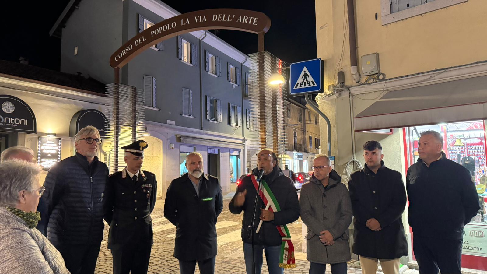 «Un progetto condiviso con commercianti e cittadini», così l’ha definito il sindaco Luca Fasan il quale ha ricordato anche il posizionamento delle 3 sculture donate dall’artista Giovanni Pacor situate in tre punti diversi di Corso del Popolo e l’installazione dell’illuminazione in quota che a rotazione, in diversi periodi dell’anno, propone alla cittadinanza un tema diverso che accompagna chi passeggia in questa storica strada. Alla cerimonia che ha visto l’accensione della nuova infrastruttura urbana hanno preso parte – tra gli altri – il Questore Luigi Di Ruscio, il Maresciallo Mario Egidi, il vicesindaco Marta Calligaris, l’assessore al commercio Luca Zorzenon e i progettisti. Presenti anche i presidenti di Ascom, VivaCentro e Pro Loco.