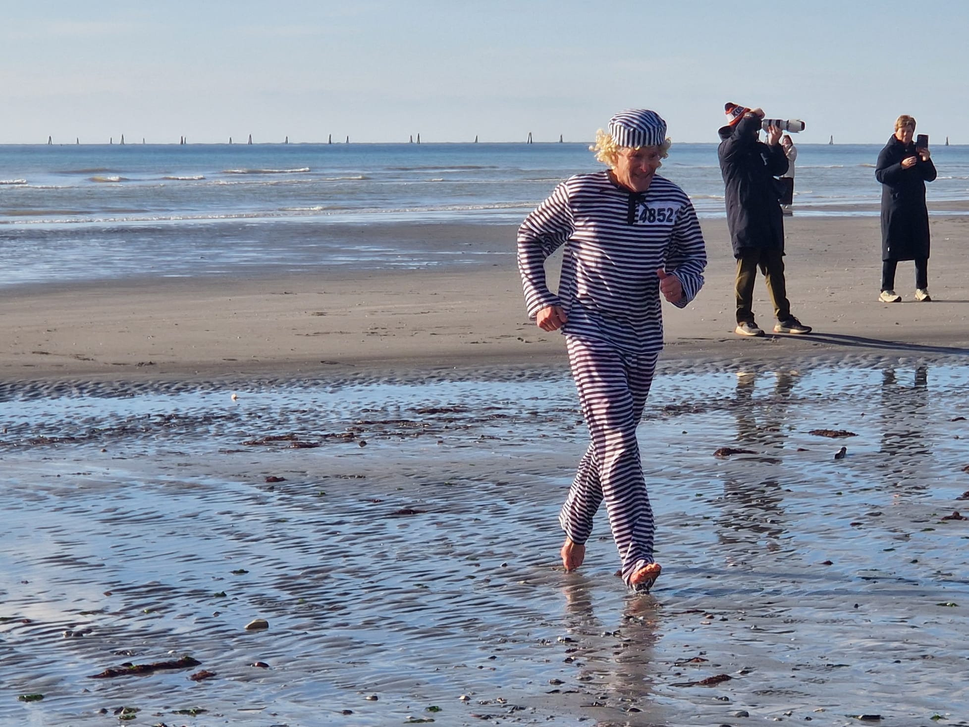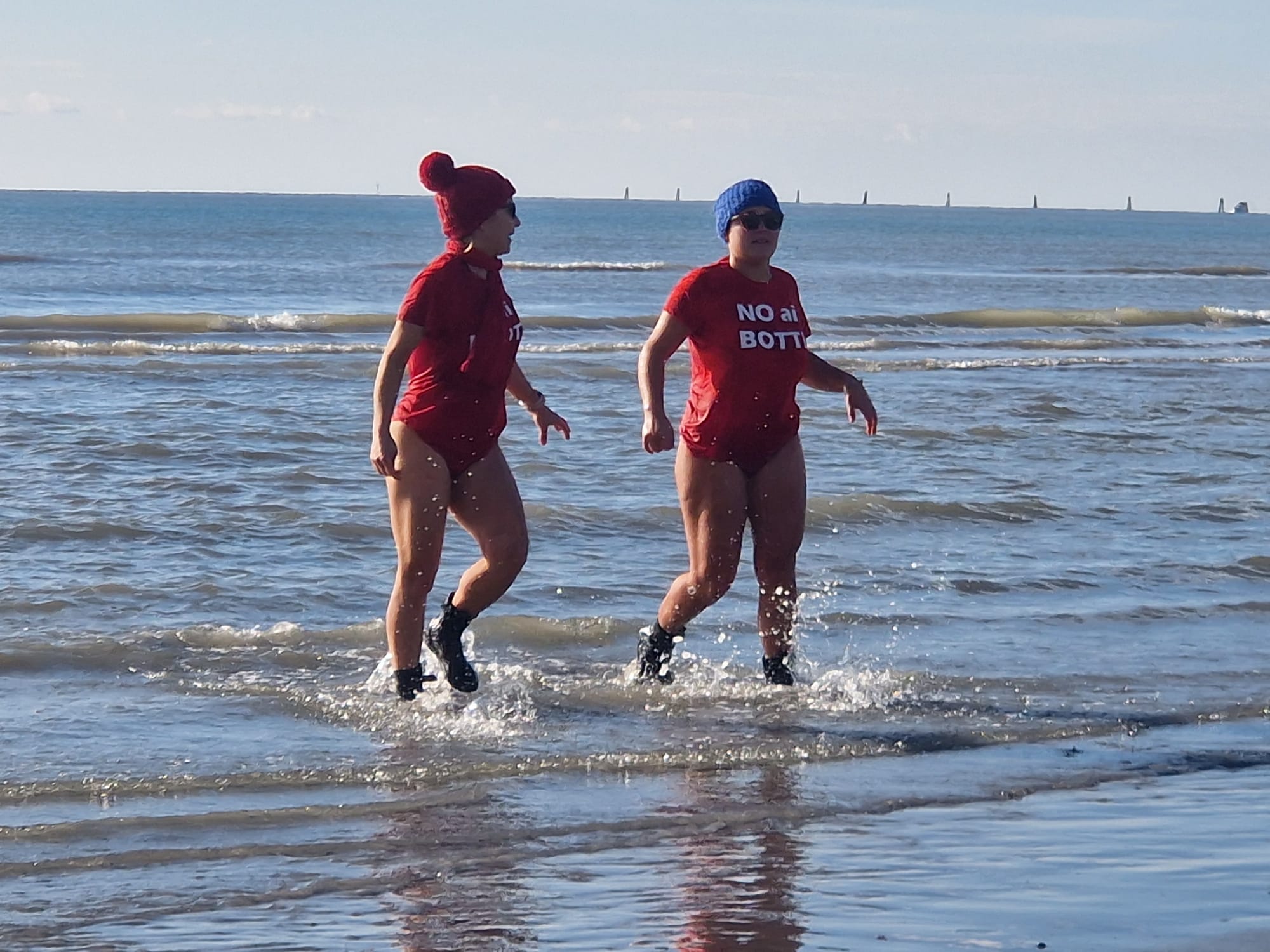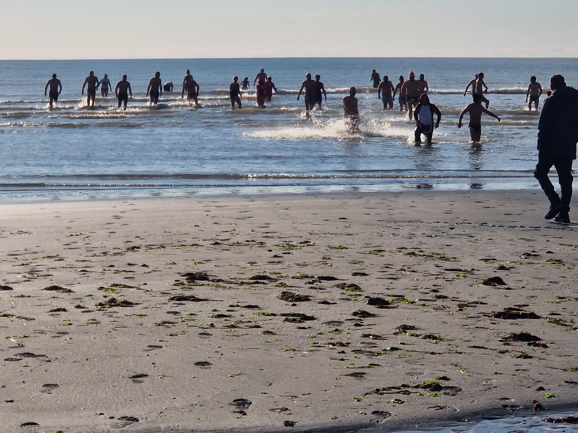 «Durante il periodo del Covid – evidenzia - eravamo in due o tre. È sempre un’emozione che dà la carica, l’energia per partire alla grande con il prossimo anno. L’aspetto divertente è che un evento molto goliardico: ci si traveste, ciascuno indossa un accessorio rosso o altro di simpatico per festeggiare e stare assieme». Così, non poteva mancare la renna-canguro impersonata da Daniele di Mortegliano, che sotto il pellicciotto indossa la tuta termica e partecipa con il gruppo di motociclisti Free Rider’s Spirits: «Abbiamo scelto di partecipare – ammette - per farci conoscere e sostenere l’iniziativa». «Siamo pochi – interviene il segretario del Motoclub Martino – ma coraggiosi. L’idea di partecipare è venuta al nostro socio Michele. Bisogna convincersi che faccia caldo», conclude con un sorriso. Ad attendere il gruppo nel sole d’inverno che bacia la Diga è anche Nicola: «Sono un amico di Marco – rivela - e dal 2015 lo assecondo in questa bellissima tradizione che nel 2019 portò a fare il bagno circa un centinaio di persone. Il nostro sogno sarebbe stato quello di spalmarsi su tutta la lunghezza della spiaggia, ma il Covid e altri eventi hanno portato il gruppo a stabilizzarsi sulle cinquanta o sessanta unità». Sette i gradi dell’acqua di mare registrata da uno dei tuffatori prima del bagno corale. Berretti rossi da Babbo Natale, costumi da Super Mario o festoni natalizi a cingere i fianchi, il gruppo si è diretto in corsa verso le acque cristalline tenendosi per mano.