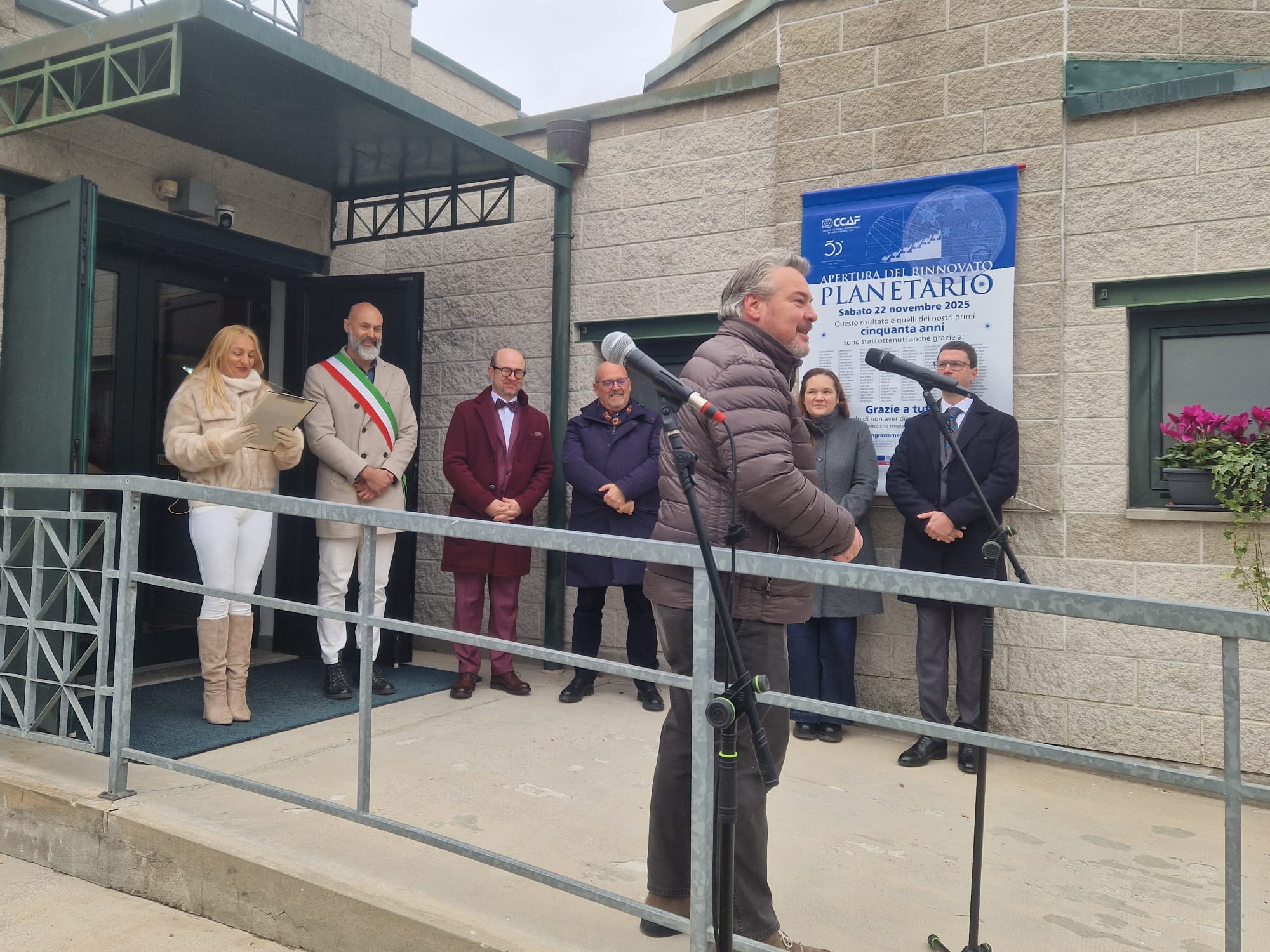 Chissà quale altro canto avrebbe potuto ispirare Leopardi, la nuova veste dell’Osservatorio astronomico di Farra d’Isonzo inaugurata nella giornata di oggi, 22 novembre. Quelle «vaghe stelle dell’Orsa» che ancora risplendono tremolanti nelle notti limpide, mostrate nel Grande Carro – o Grande Mestolo – durante l’esposizione che ha coronato la cerimonia. «Portiamo il saluto della Regione, ma anche la nostra soddisfazione – rimarca l’assessore regionale al Patrimonio e sistemi informativi Sebastiano Callari alla presenza delle autorità – perché un allineamento di pianeti ha fatto coincidere il cinquantennale di quest’importante associazione con l’anno della capitale europea della cultura, durante il quale abbiamo rinnovato una struttura che è un’eccellenza per questo territorio. In un momento come questo in cui a pochi chilometri di distanza si stanno vivendo tragedie inenarrabili la Regione vuole in qualche modo aprirsi a un sorriso, in quanto si tratta di una struttura che contribuisce con la formazione e avvicina le persone a questioni che stanno fra la scienza e il romanticismo. Le stelle ci ricordano sempre la nostra umanità, ecco perché in questo momento difficile ricordarsi di loro è davvero importante».