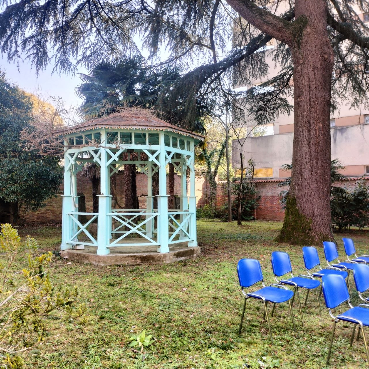 La vastità dell’immobile e il suo pregio architettonico-paesaggistico lo rendono però anche la sede ideale per eventi culturali e mostre, mentre il giardinetto interno, impreziosito negli angoli da due gazebo azzurrini, potrà essere un nuovo piccolo polmone verde fruibile dalla cittadinanza. C’è di più: il caveau, insolitamente sito al primo piano dell’edificio, è stato già richiesto dalla fondazione Carigo per potervi ospitare parte del proprio patrimonio artistico, al momento interamente racchiuso nel seminterrato della sede di via Carducci.