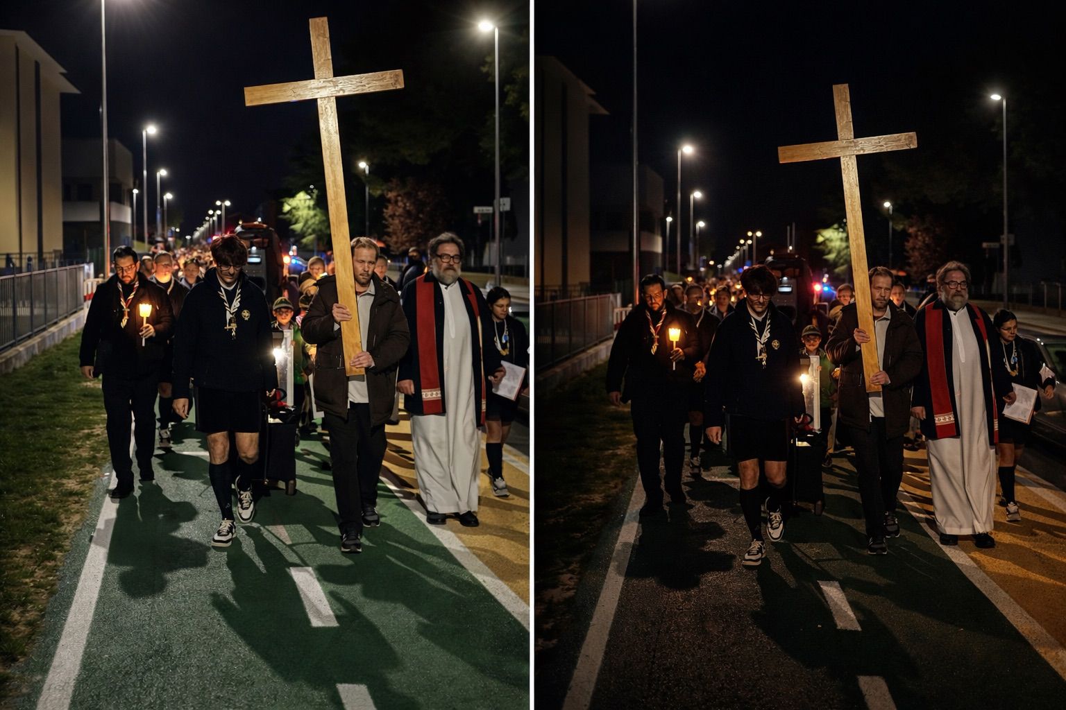Si è svolta ieri, venerdì 3 aprile, la Via Crucis per le vie della città organizzata dalla Parrocchia di San Giuseppe. La processione è iniziata dalla Chiesa di San Giuseppe a Largo Isonzo di Monfalcone e ha raggiunto il cimitero cittadino, dove si è tenuto l’incontro con la Parrocchia dei Santi Pietro e Paolo di Staranzano, anch’essa arrivata in processione. Le due comunità hanno proseguito insieme le ultime tre stazioni della Via Crucis. L’iniziativa è stata promossa dal parroco don Paolo Zuttion con l’intento di favorire un momento condiviso tra le due parrocchie.