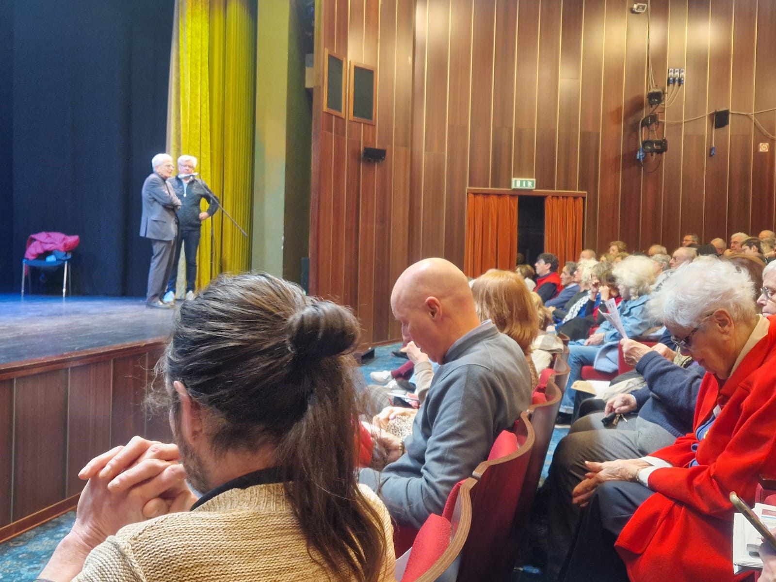Cresce l’ansia per il pericolo che la guerra si espanda e vengano usate armi sempre più potenti». Da questa follia sgorga quel sentimento di impotenza che lacera gli animi diffondendo paure e insicurezza anche negli adolescenti, talvolta degenerando in violenza. Fra le vittime di guerra, secondo la Di Gianantonio svetta poi la cultura, sopraffatta dalla mancanza d’informazione e dalle fake news. «Non possiamo più restare inermi o indifferenti – interviene uno degli organizzatori Fabio Sesti – perché l’assuefazione psicologica e culturale è il primo sintomo di una società malata che va incontro all’auto massacro». A ringraziare Moni Ovadia - per la quarta volta ospite al Kulturni - è infine il direttore Igor Komel: «Sei il simbolo della pace nel mondo, e non potevamo sperare in un personaggio più gradito». «Oggi siamo stati precipitati in un tempo brevissimo sull’orlo dell’abisso – riflette il milanese di origini bulgare Salomone, in arte “Moni” – ed è veramente un miracolo che non siamo ancora piombati in una guerra atomica».