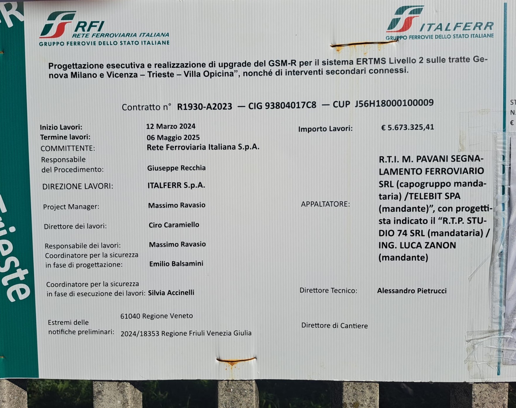 Sembrerebbe, stando a quanto citato nell’interrogazione, che l’intervento sia «riconducibile a lavori commissionati da Rete Ferroviaria Italiana nell’ambito del progetto di adeguamento tecnologico GSM-R per il sistema ERTMS Livello 2, come da cartellonistica di cantiere affissa nel sito». Proprio quell’ente ferroviario che, sottolineano i tre consiglieri d’opposizione, «è già stato più volte sollecitato nel corso degli anni dall’amministrazione comunale e dai cittadini per l’adozione di misure di mitigazione del rumore (barriere fonoassorbenti e schermature) lungo il tratto ferroviario»: tali interventi, però, «risultano tuttora non realizzati in gran parte del territorio comunale, ad eccezione del tratto di Duino».
