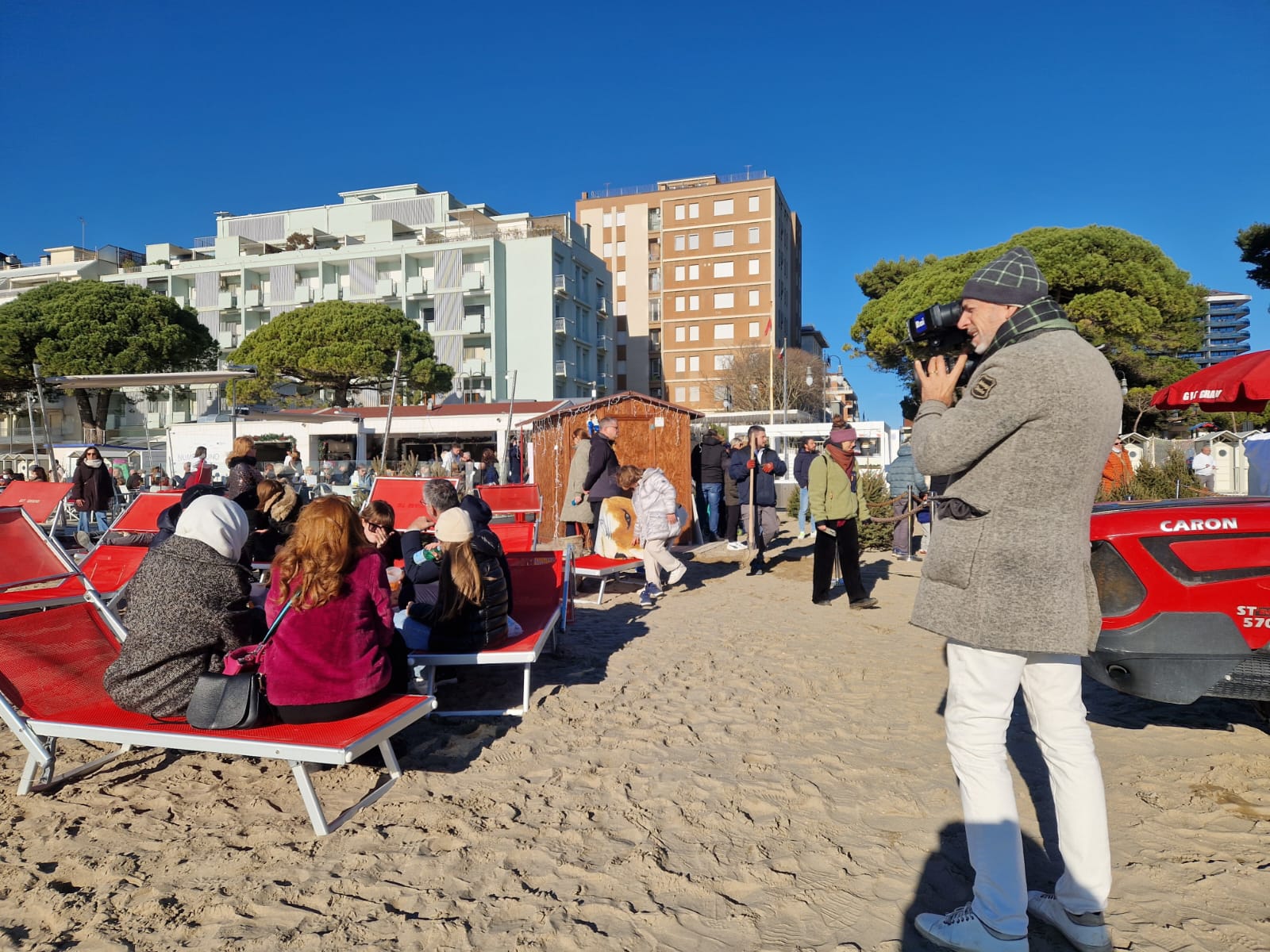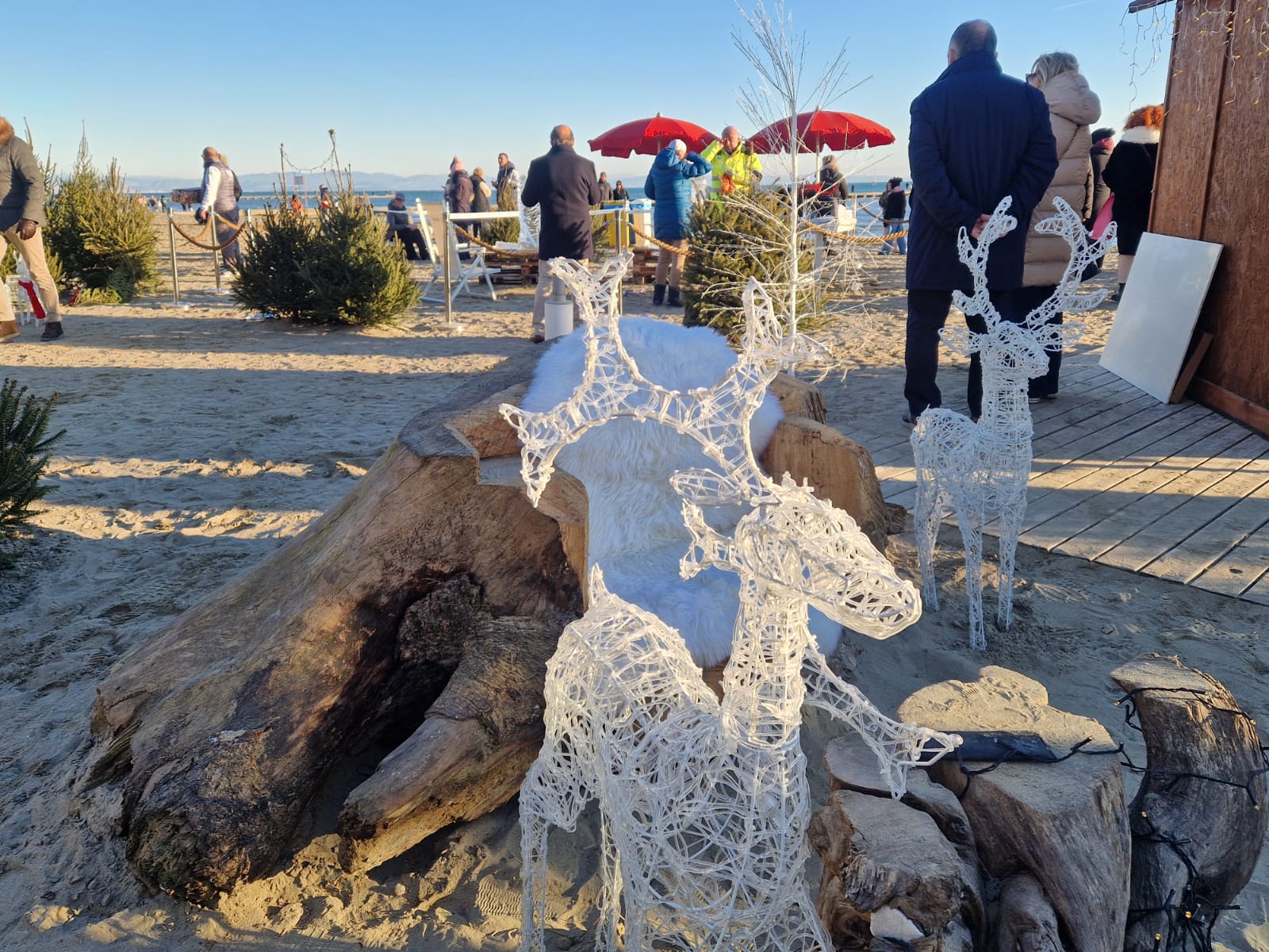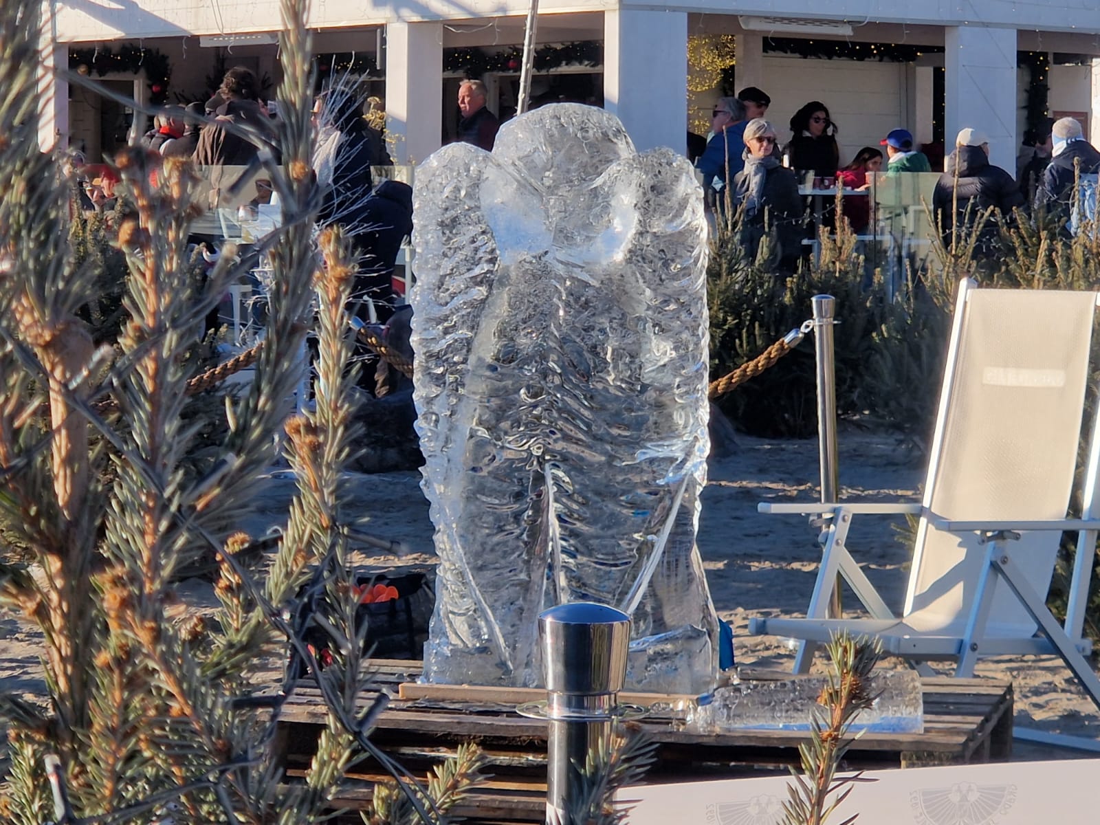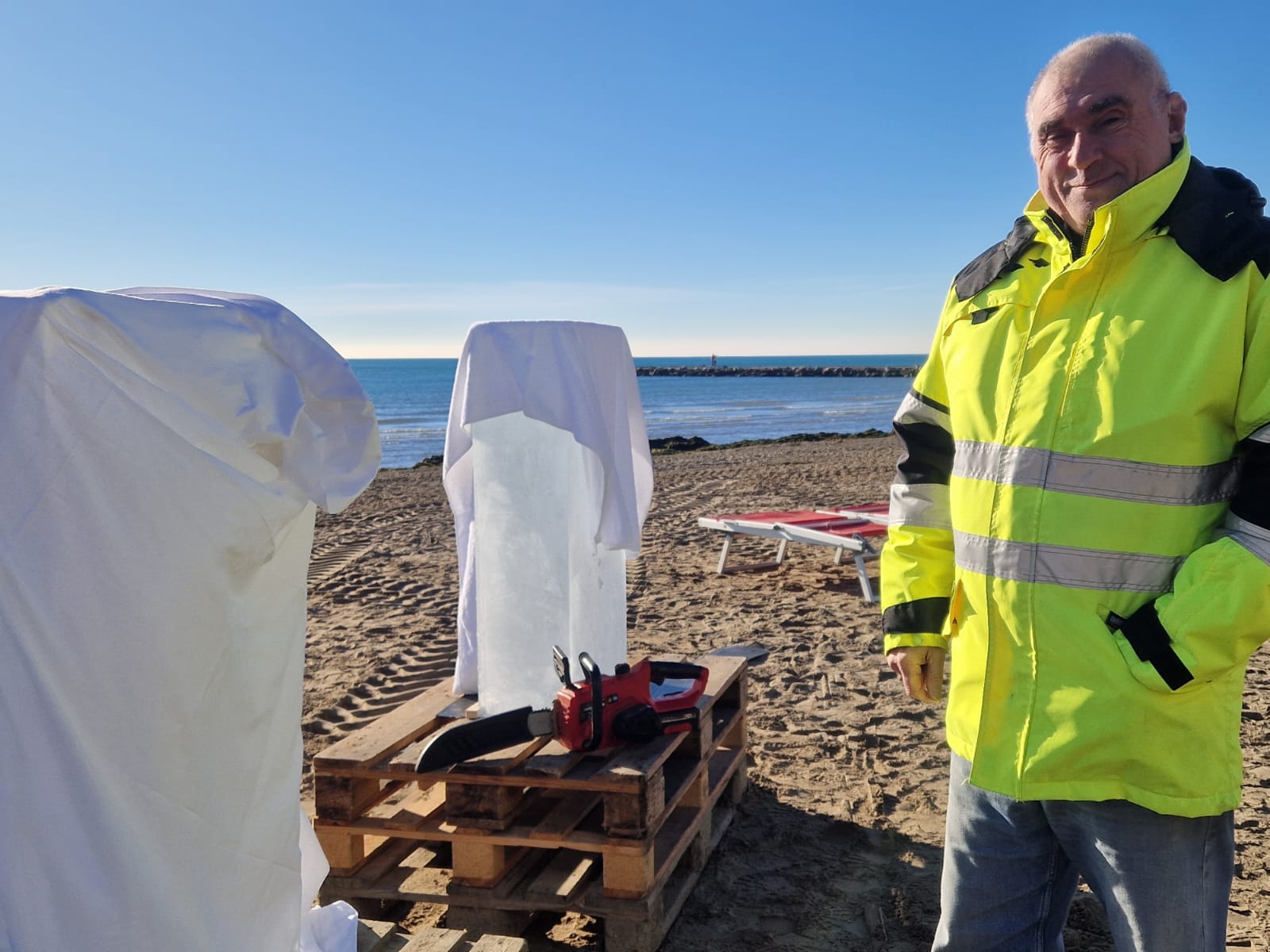 Le due sculture, un angelo e un castello, sono state realizzate stamattina, 28 dicembre, sulla spiaggia del Bar Numero Uno per la seconda edizione della Winter Season.