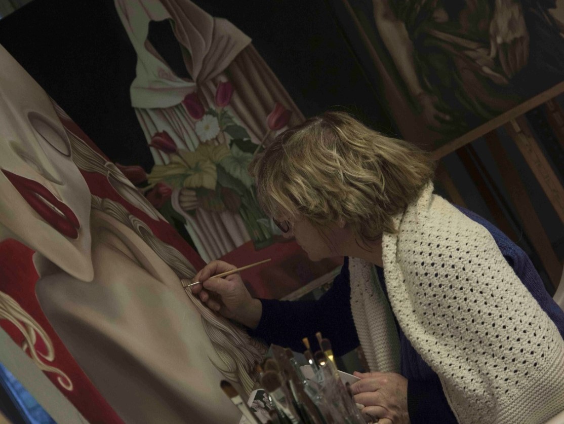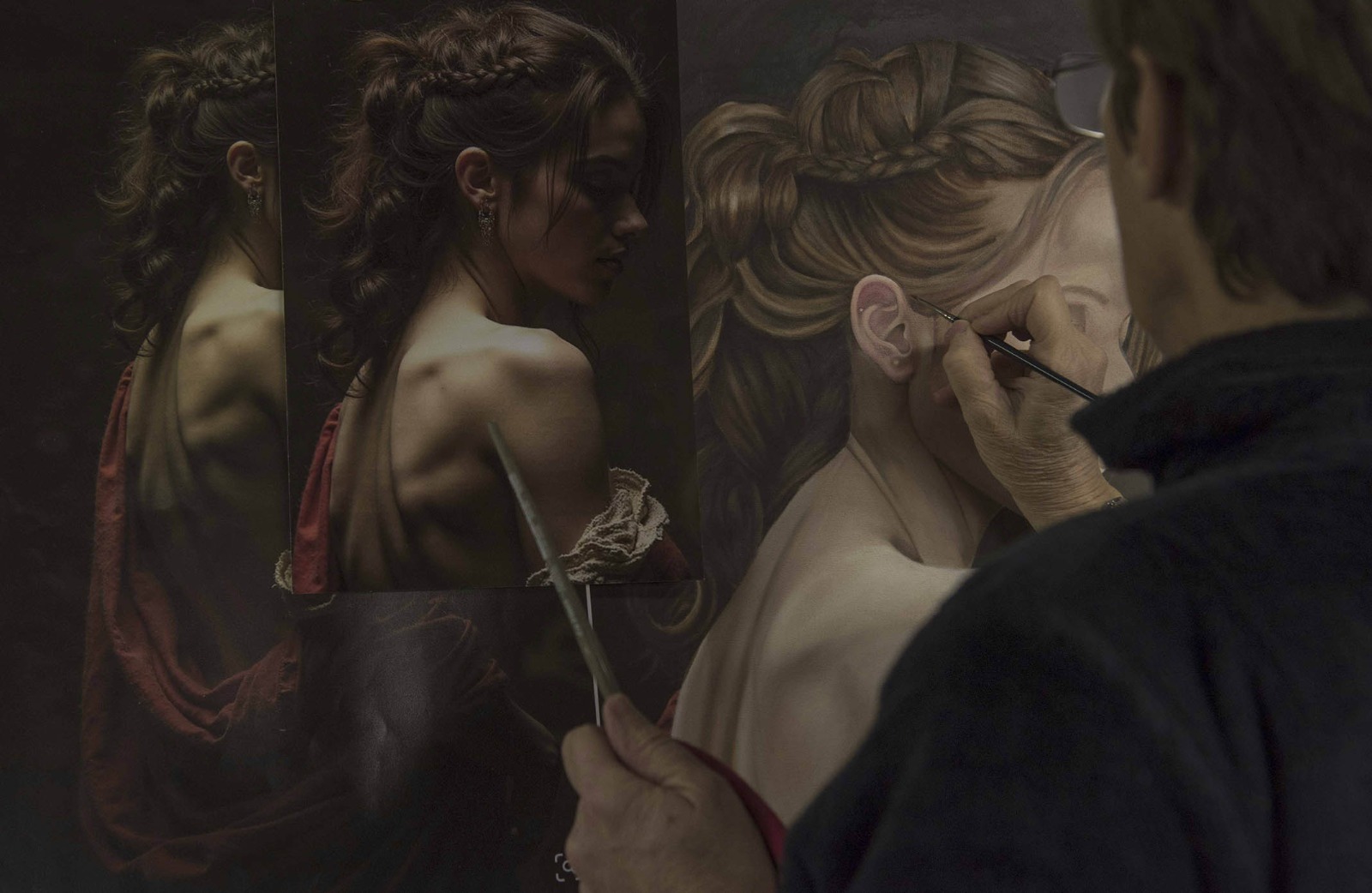 Una serie di tele che nascono dall’incrocio tra lo sguardo artistico contemporaneo con la visione dei grandi maestri della storia dell’arte: un dialogo fondato sul legame continuo tra passato e presente, ma anche e soprattutto sulla conoscenza tecnica di leggi e delle regole precise grazie alle quali i colori si intrecciano tra loro dando vita a coerenti armonie.