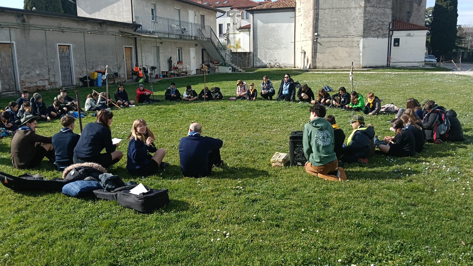 Al termine della celebrazione, spazio al gioco e alla riflessione. Le attività sono state simbolicamente aperte dall’arrivo di un capo travestito da Baden-Powell, venuto a “scoprire” come si vive oggi lo scoutismo. Divisi in squadre intitolate a tre montagne friulane – Mangart, Canin e Jôf Fuart – i ragazzi si sono cimentati in quiz a staffetta sul movimento scout, giochi geografici e prove espressive dedicate al tema della fratellanza.