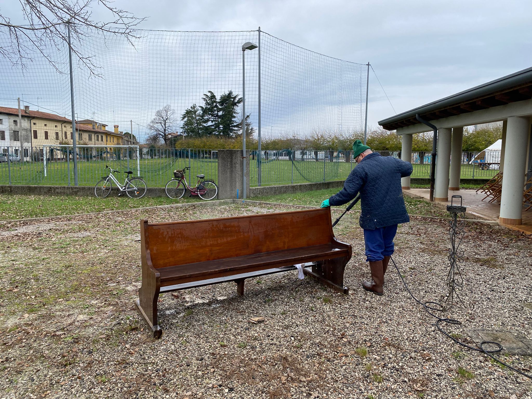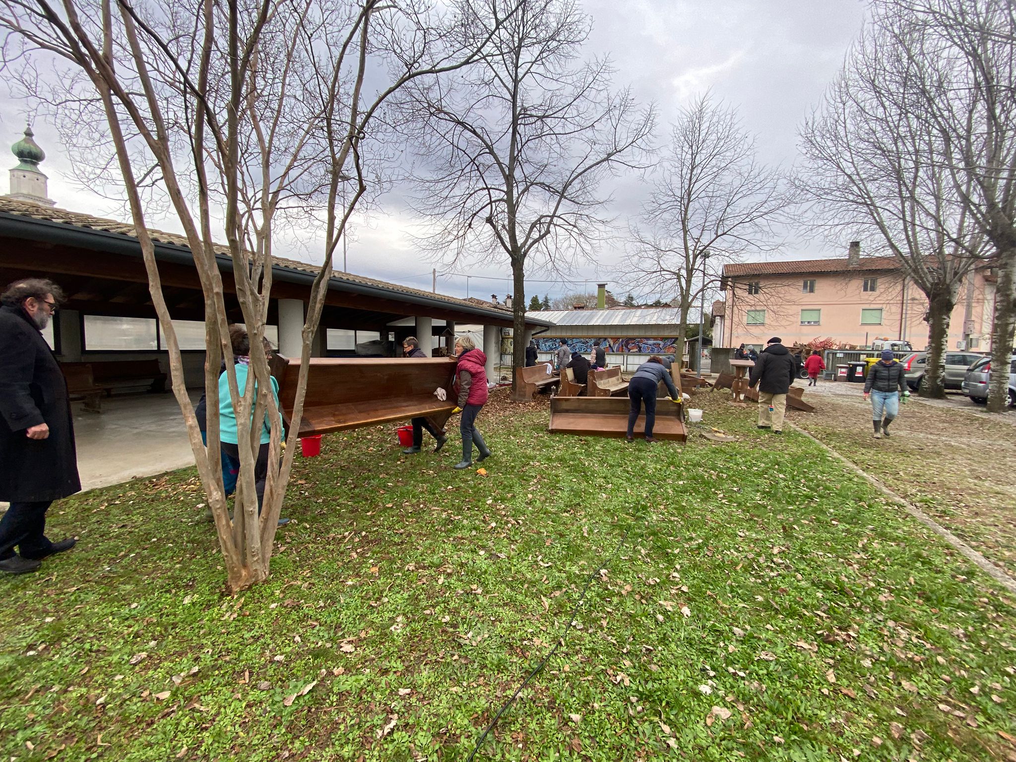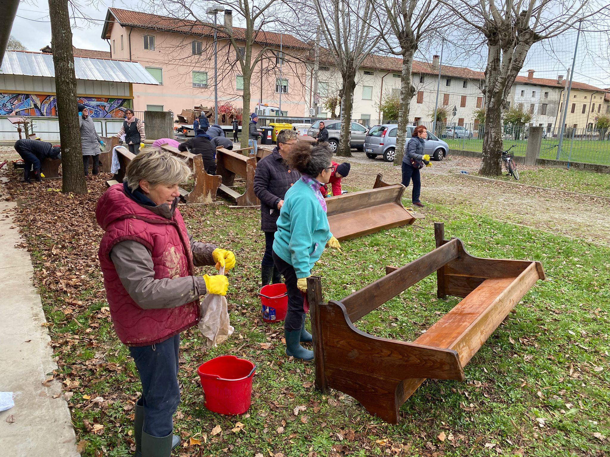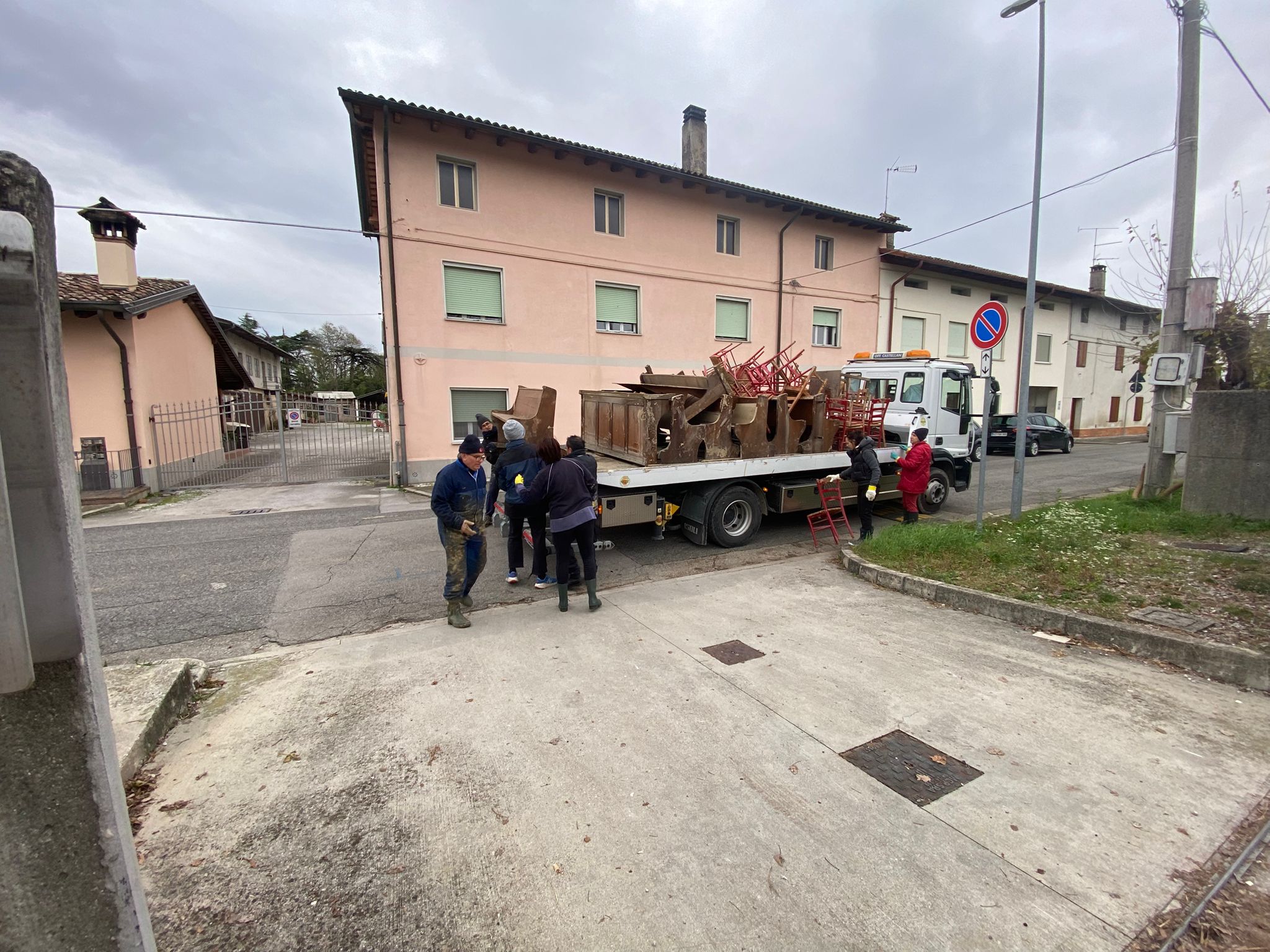 Sistemate le abitazioni si è passati, questa mattina, anche ad altri edifici come le due chiese della cittadina, la parrocchiale di Sant’Andrea apostolo e la chiesa della Beata Vergine Lauretana. D’altronde, il parroco, don Michele Centomo lo aveva detto qualche giorno fa: «Prima ripuliamo le case e poi le chiese». Grazie a un cospicuo numero di volontari – una sessantina circa – è stato possibile, con l’ausilio della Protezione Civile, trasportare tutte le suppellettili, dai banchi ai leggi agli stendardi fino agli armadi delle sacrestie, fino a Romans d’Isonzo. Qui un secondo gruppo di volontari, armati di pazienza e di ‘olio di gomito’, hanno lentamente e minuziosamente ripulito il tutto.