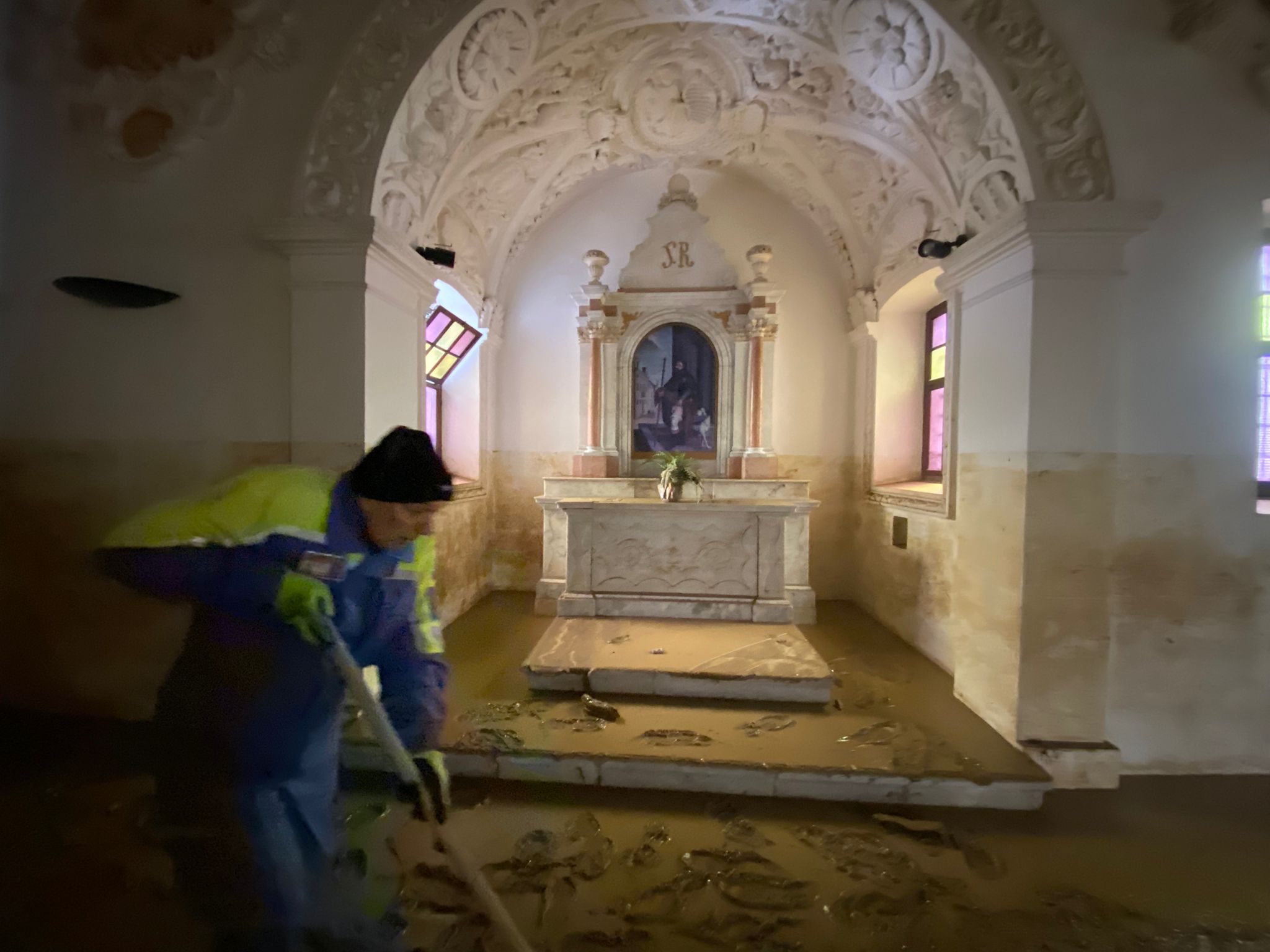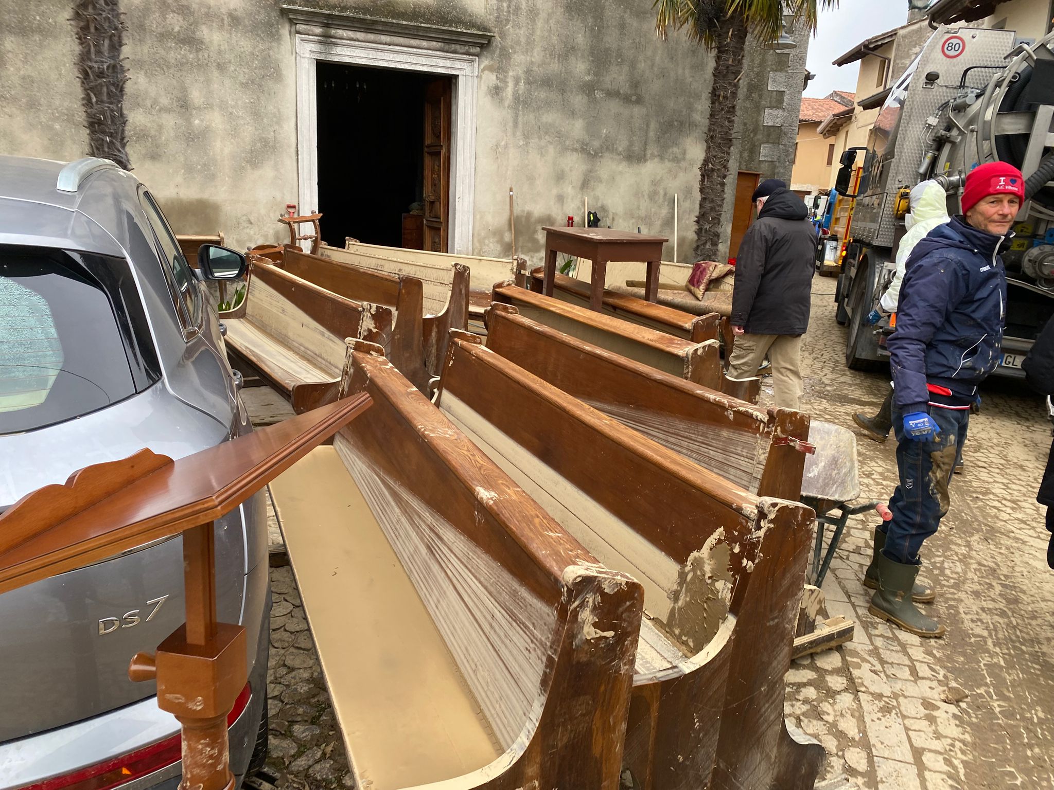 Dall’altra parte, invece, importante il lavoro con l’ausilio di ditte esterne all’interno degli edifici sacri per ripulire il tutto dal fango e dalla sporcizia. Un lavoro che non si concluderà a brevissimo ma che sicuramente è già un passo in più verso la normalità.