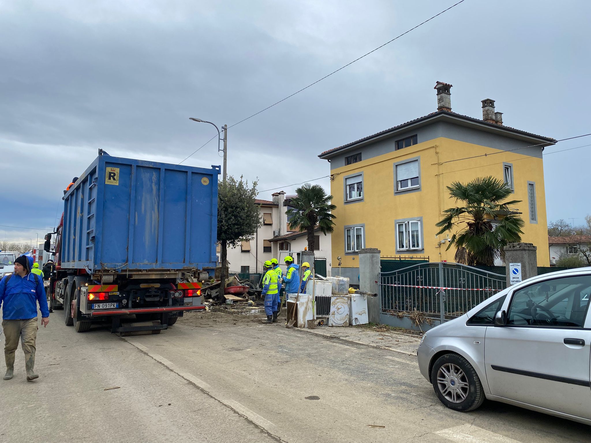 Una vista tra rottami, mobili distrutti dall’acqua e case che lentamente vengono ripulite e abitate. Nuovamente ardono i focolari e la luce, piano piano, ha fatto capolino: a Versa di Romans d’Isonzo la vita ancora non scorre normalmente ma, almeno, il paese si riordina e si ripulisce. Si sveste, insomma, di quella patina viscida e marrone, quel fango che l’ha oppressa per giorni.