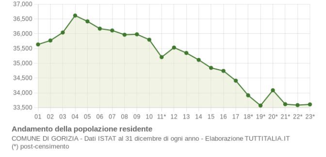 Se negli ultimi anni la città sia attrattiva o meno, questo ce lo dicono i dati. Prendendo semplicemente il punto di vista demografico notiamo che alla fine del 2023 il comune di Gorizia contava 33.608 abitanti. Ad oggi, con un'età media di 48,5 anni e un indice di vecchiaia in aumento, la città è destinata a un calo demografico. Partita nel 2001 con più di 35.600 abitanti, il saldo naturale (ovvero la differenza tra le nascite e i decessi) è stato sempre in negativo, fino ad arrivare ai numeri di oggi. E in una città piccola come Gorizia, dove facendosi “due vasche del Corso” si incontra metà popolazione, queste perdite si fanno sentire, più forti che mai: Daniela Modula, proprietaria della libreria dell’usato in via delle Monache, ha visto la città cambiare sotto i suoi occhi e mi ha raccontato quanto il contatto umano sia importante.