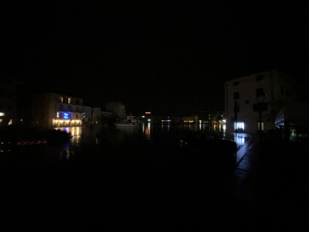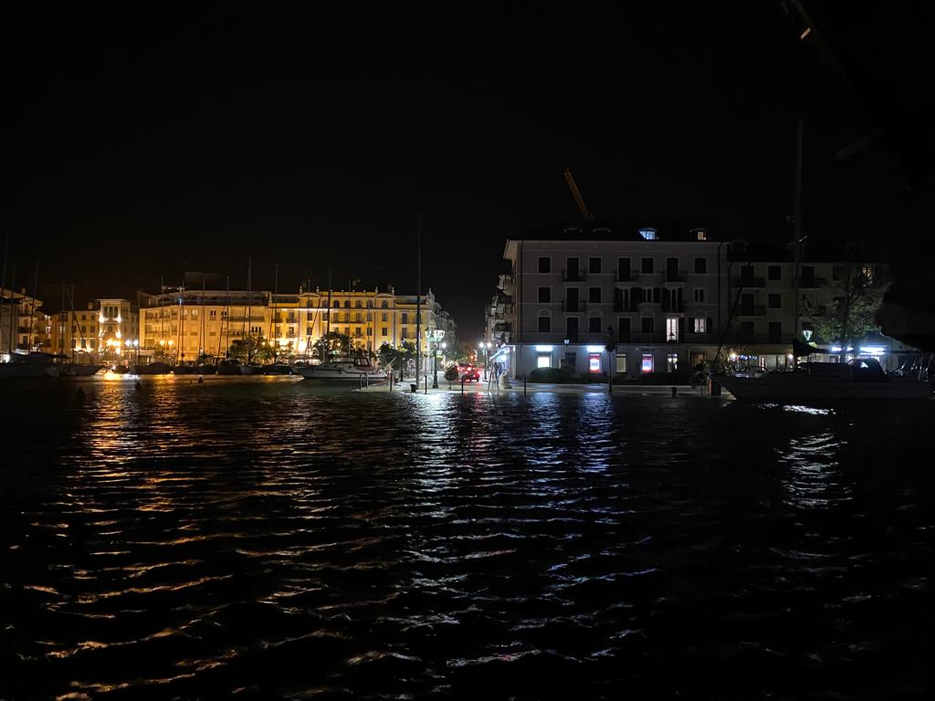 Alle 21.28 in porto Mandracchio la situazione era al limite. Quindi, alle 21.34, le prime fuoriuscite dal porto con Riva Bersaglieri e l’ingresso del Porto rimangono al buio. Alle 21.41 il vento di scirocco si alza e la Protezione civile dà il segnale acustico. Alle 22 anche il rione di Colmata è al buio. Alle 22.11 i volontari hanno nastrato il porto.