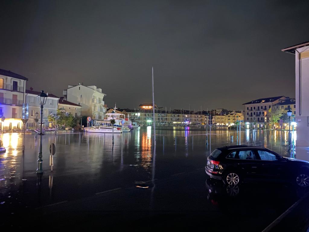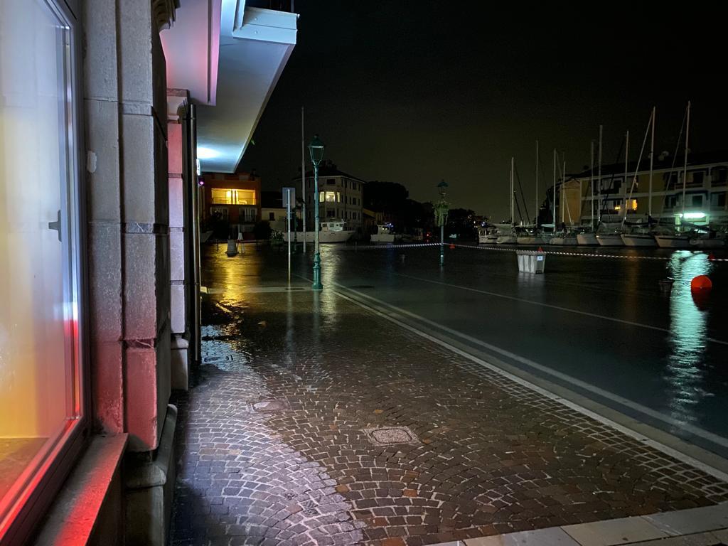 L'acqua alta torna a sorprendere il porto di Grado, angoli dell'isola al buio