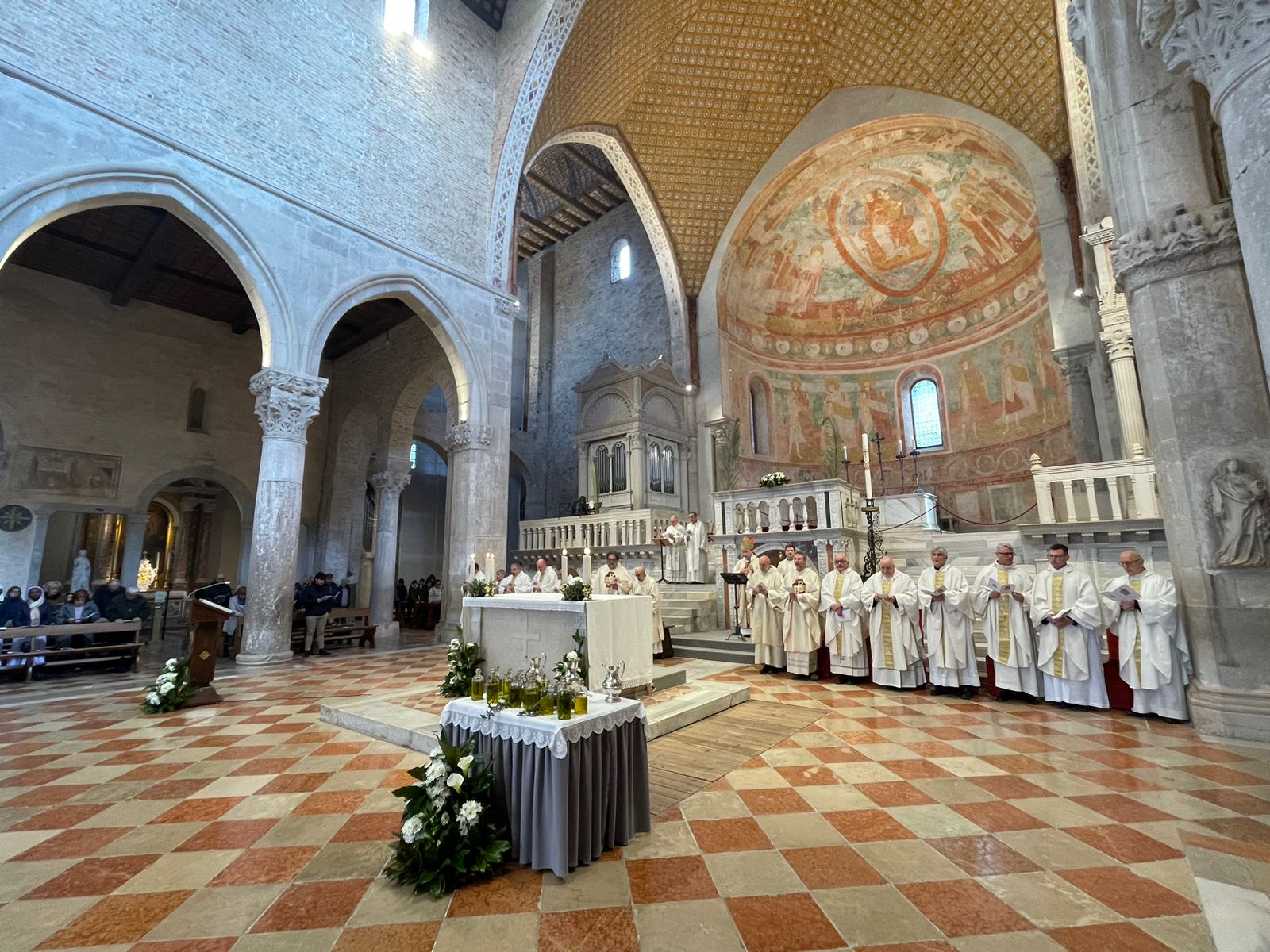 È in questo contesto che, nella mattinata di ieri, giovedì 2 aprile, nella basilica patriarcale di Aquileia, l’amministratore apostolico monsignor Carlo Roberto Maria Redaelli ha presieduto la celebrazione, al centro della quale vi è anche il rinnovo delle promesse sacerdotali e la benedizione degli oli santi – l’olio dei catecumeni, degli infermi e il sacro crisma – destinati ad accompagnare la vita sacramentale dell’intero anno liturgico.