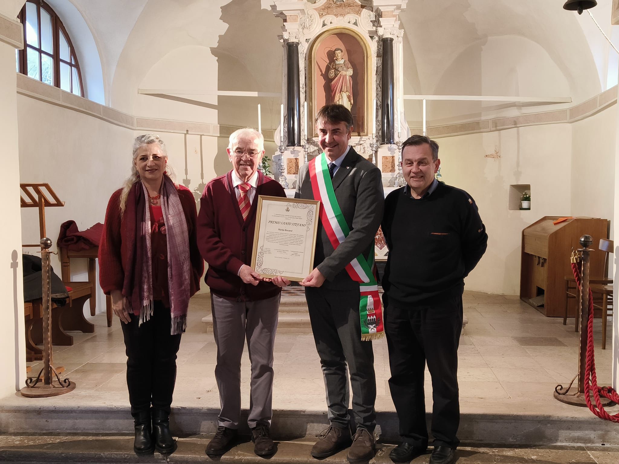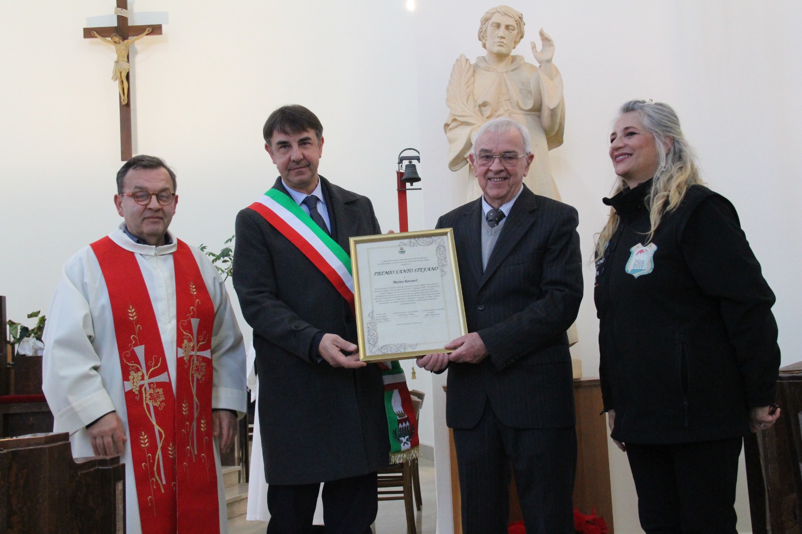 A conclusione della funzione religiosa è stato consegnato, dal sindaco Mauro Benvenuto e dalla presidente della Pro Loco locale Patrizia Pallaro, il Premio Santo Stefano, che quest’anno è stato assegnato alla storica figura del ronchese Marino Boscarol, classe 1947, storico direttore della Filarmonica Verdi e, dal 1975, erede della celebre bacchetta di Toni Marinel. È stato anche direttore di due istituti bancari: la Banca Popolare Udinese e la Cassa Rurale. Il momento clou è stato vissuto in piazza Santo Stefano a mezzogiorno, quando l’intera folla si è riunita davanti al piccolo palco, dove ha avuto luogo la consueta “Cantada Bisiaca”, che quest’anno ha riservato “un colpo di scena”. Proprio nel mezzo dei vari canti popolari bisiachi, complice una piccola pausa, durante la quale Marino Boscarol ha ricordato i 50 anni esatti dal passaggio di testimone e di come la Cantada sia partita da una semplice e contenuta festa di paese, che all’epoca si svolgeva ancora su due carretti agricoli improvvisati come palcoscenico.