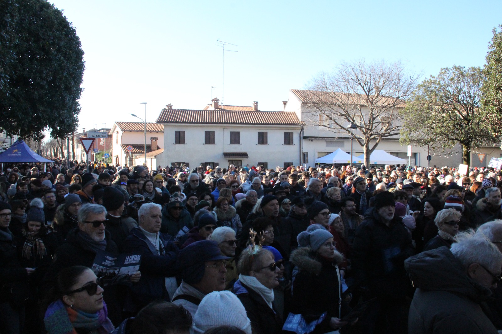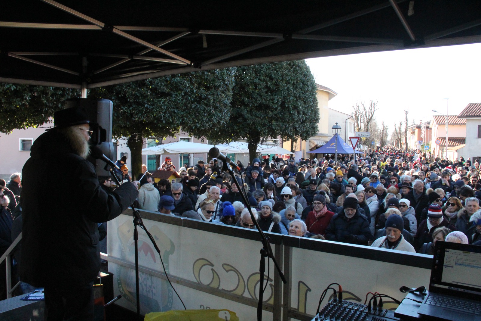 Folla festosa immancabile stamane , venerdì 26 dicembre, a Vermegliano per il consueto tradizionale appuntamento post-natalizio della festa di Santo Stefano. Tante le piccole bancarelle e i cortili delle case aperti a festa lungo le strade della frazione ronchese; pronti e imbanditi anche i numerosi stand affianco alla chiesa nuova di Santo Stefano. Proprio nella parrocchiale di viale Garibaldi ha avuto luogo, alle 10, il primo appuntamento della giornata, quello religioso. Quest’anno la messa patronale è stata officiata da don Giovanni De Rosa, concelebrata da monsignor Ignazio Sudoso e dai vicari parrocchiali don Luigi Fontanot e don Marco Zaina. «Santo Stefano testimoniava la fede con la sua stessa vita, non solo con le parole ma anche con i gesti»: così ha esordito don De Rosa durante l’omelia, ricordando il martire come una figura che «si è sempre distinta per il suo servizio umile e fedele verso il prossimo». Don Giovanni ha pure fatto riferimento ad alcuni giovani presenti in chiesa che, assieme ad altre persone, «sono qui oggi per ricordare e festeggiare un martire come Santo Stefano». La celebrazione è stata quindi un momento per poter approfondire la figura del protomartire e ricordare l’eredità che «ancora oggi ha lasciato tutti noi».
