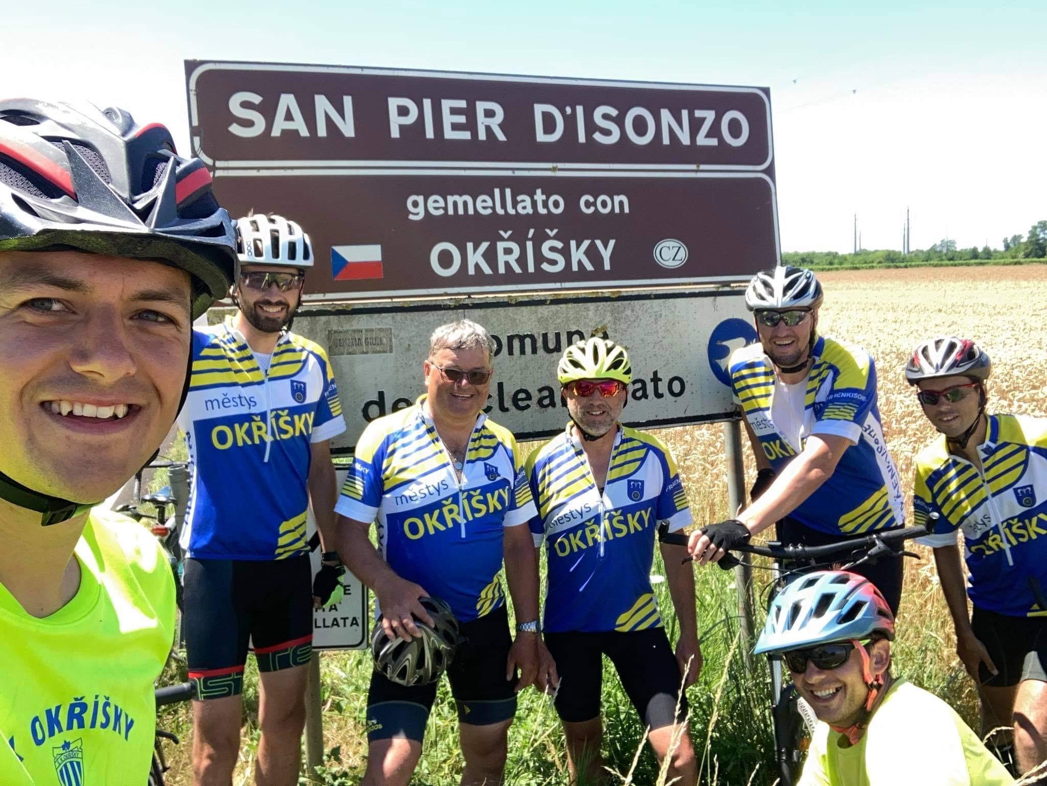 Otto tappe in otto giorni per un totale di 850 chilometri. Questa l’impresa che il sindaco di Okříšky, 2050 anime nel centro-sud della Repubblica Ceca, ha compiuto la scorsa settimana assieme a otto volenterosi concittadini. Un’avventura nata per suggellare non solo il gemellaggio con San Pier d’Isonzo, nato nel 2000, ma anche per celebrare i 650 anni dalla prima citazione del paese ceco nel 1371. I nove volenterosi ciclisti, capitanati dal primo cittadino Zdeněk Ryšavý, sono partiti il 2 luglio alla volta della cittadina bisiaca.
