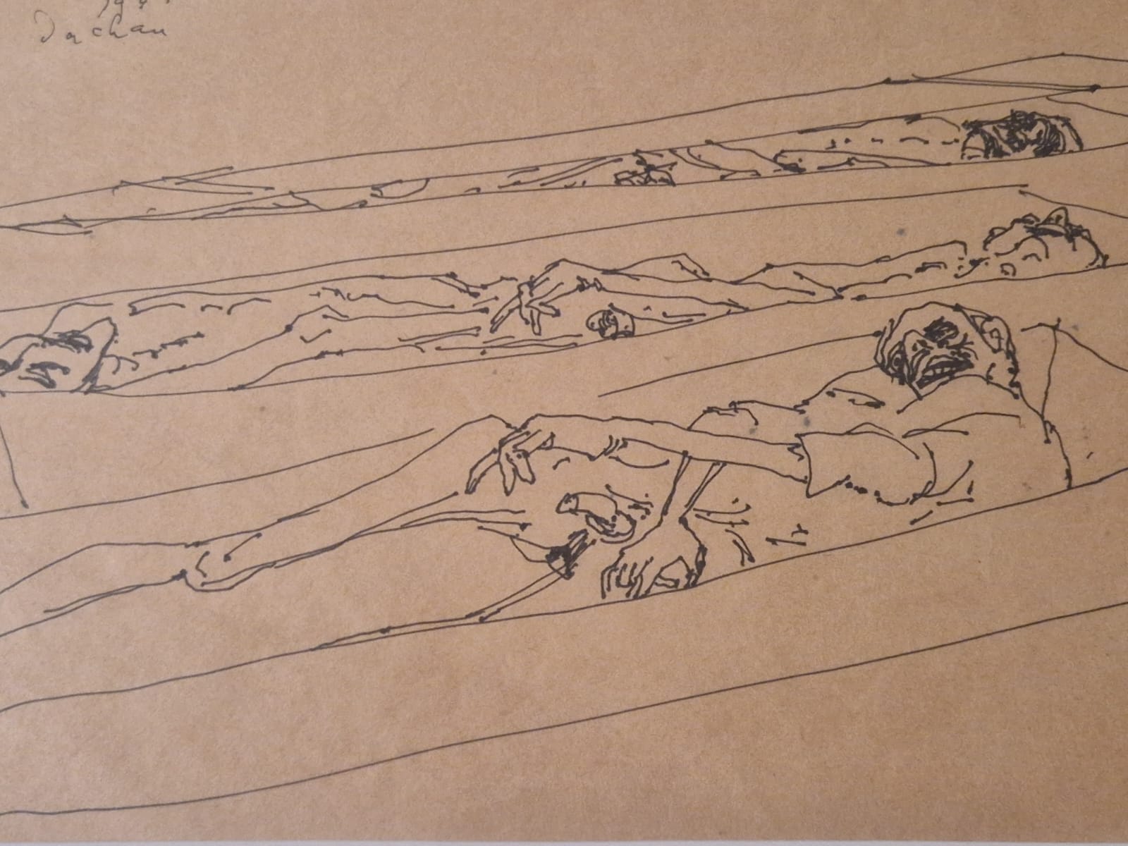 Una Stanza che sembrava destinata all’abbandono fino al provvidenziale recupero da parte del cognato Paolo Cadorin, allora a capo del dipartimento di restauro del Kunstmuseum di Basilea. «Portare la Stanza da noi – ammette Alessio-Vernì – è stato entusiasmante: da parte del nostro servizio ricerca musei e archivi storici c’è stata una grande emozione nel vederla arrivare». Un manufatto senza eguali che secondo la direttrice Erpac racchiude i valori di «un’opera d’arte globale» calcata ad hoc nell’anno della Capitale europea transfrontaliera, il cui trasferimento ha richiesto un’operazione complessa e delicata di assemblaggio. «La Stanza viaggia in tredici grandi casse – spiega – trasportate da un “bilico”. La sua ricostituzione richiede quindici giorni e lo smontaggio lo stesso tempo. Resta viva nel ricordo di chi vi ha partecipato l’emozione per l’arrivo di un così imponente e importante carico di arte e di storia». Non meno profondi i ritratti su piatti di ceramica o i ricami in filato di lana, ma l’opera che scuote le coscienze e crea un parallelismo con il cul de sac delle guerre attuali è senza dubbio lo straordinario ciclo pittorico “Noi non siamo gli ultimi”, dove i corpi ammassati nel campo di concentramento assurgono a dramma universale. A questi s’intersecano i “Motivi vegetali” di tronchi scarnificati che richiamano i disegni di Dachau, dove ciò che resta dell’umanità non è meno umano nel suo aspetto più misero qual è il disfacimento della morte.