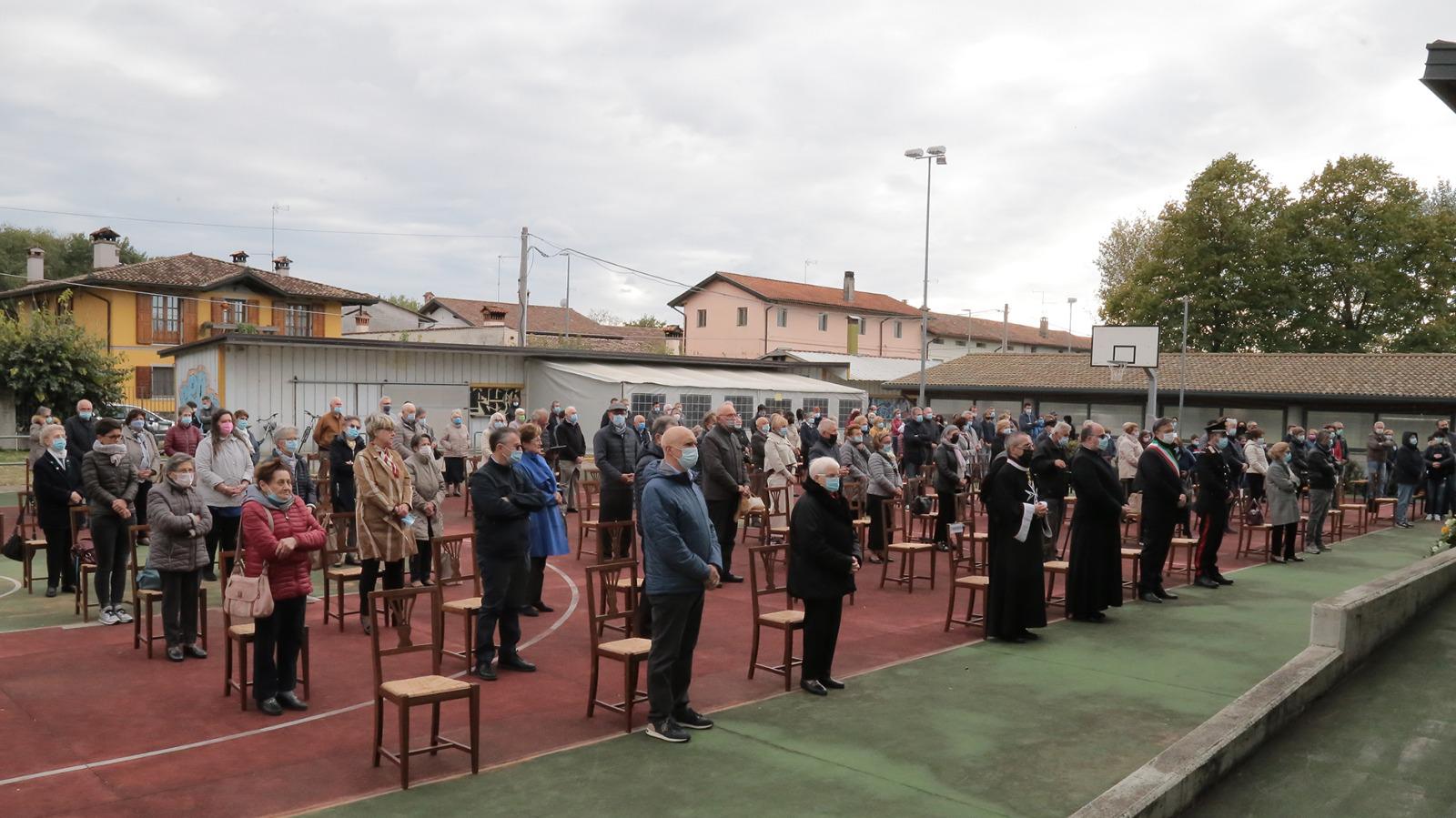 Don Centomo entra a Romans, parco gremito e attesa per la riapertura della chiesa