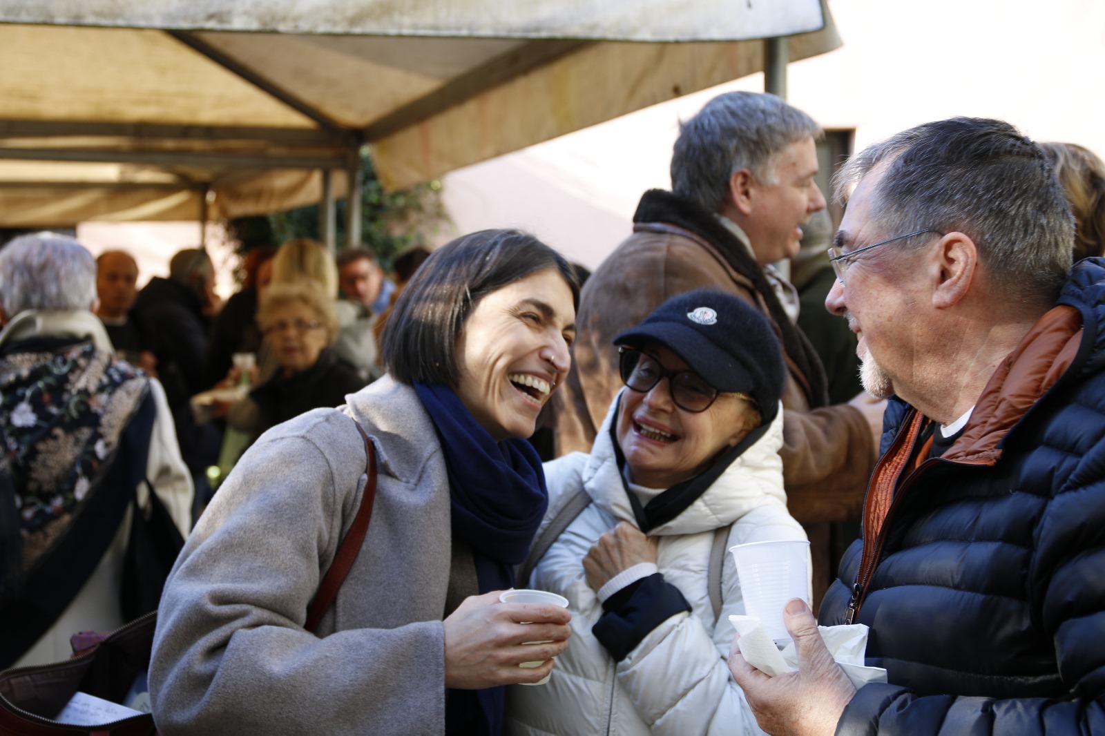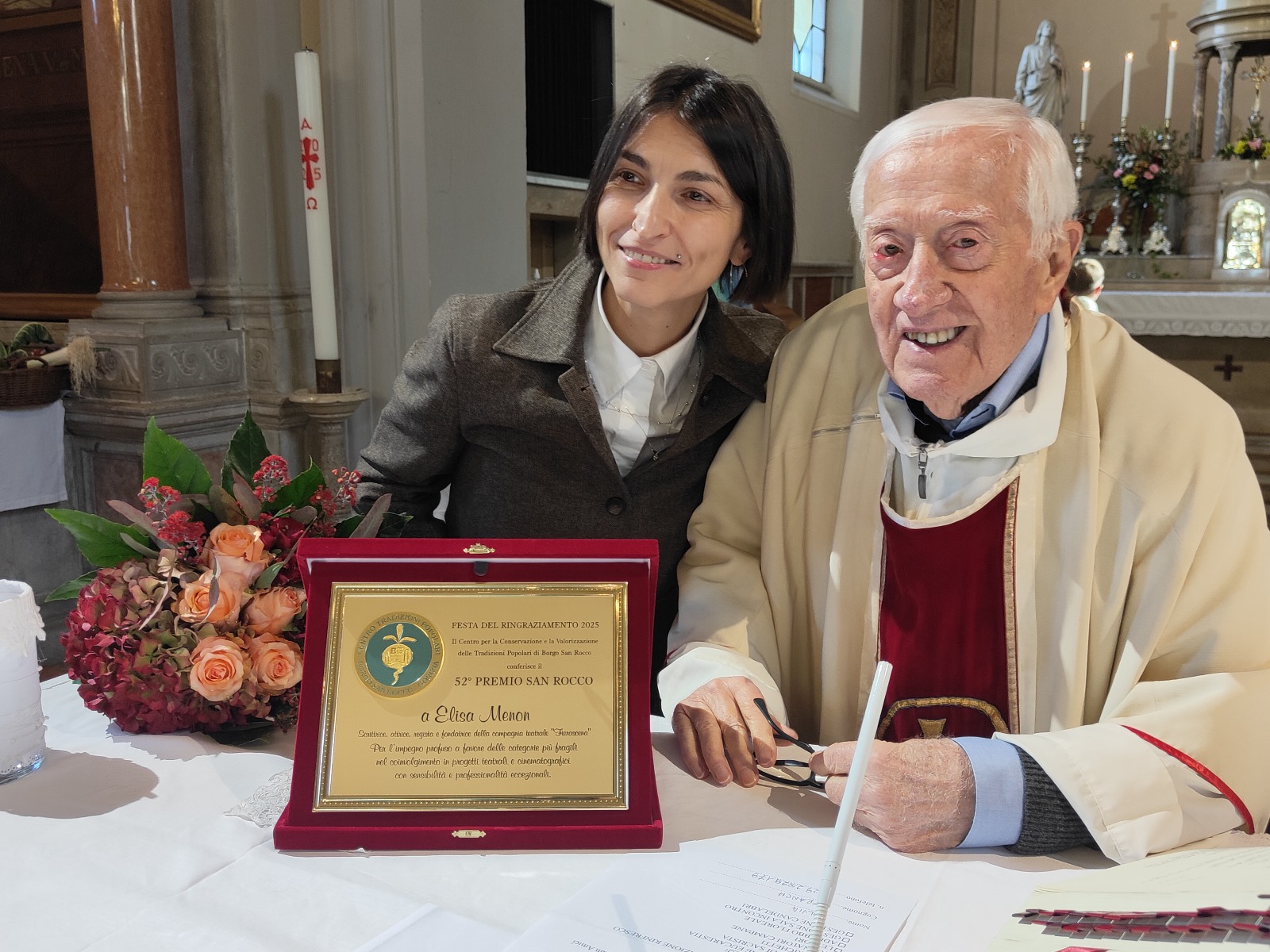 Tra i vari ringraziamenti ricorda Antonino Lo Sardo e Cinzia Lenardi e chi, a inizio del suo percorso, «quando ancora mi stavo formando mi ha accolto in Sala Incontro e ha creduto in me standomi accanto e dandomi proprio quello sguardo». Il Borgo chiuso la mattinata di Ringraziamento mangiando i tradizionali “ufiei”, le rape simbolo di San Rocco.