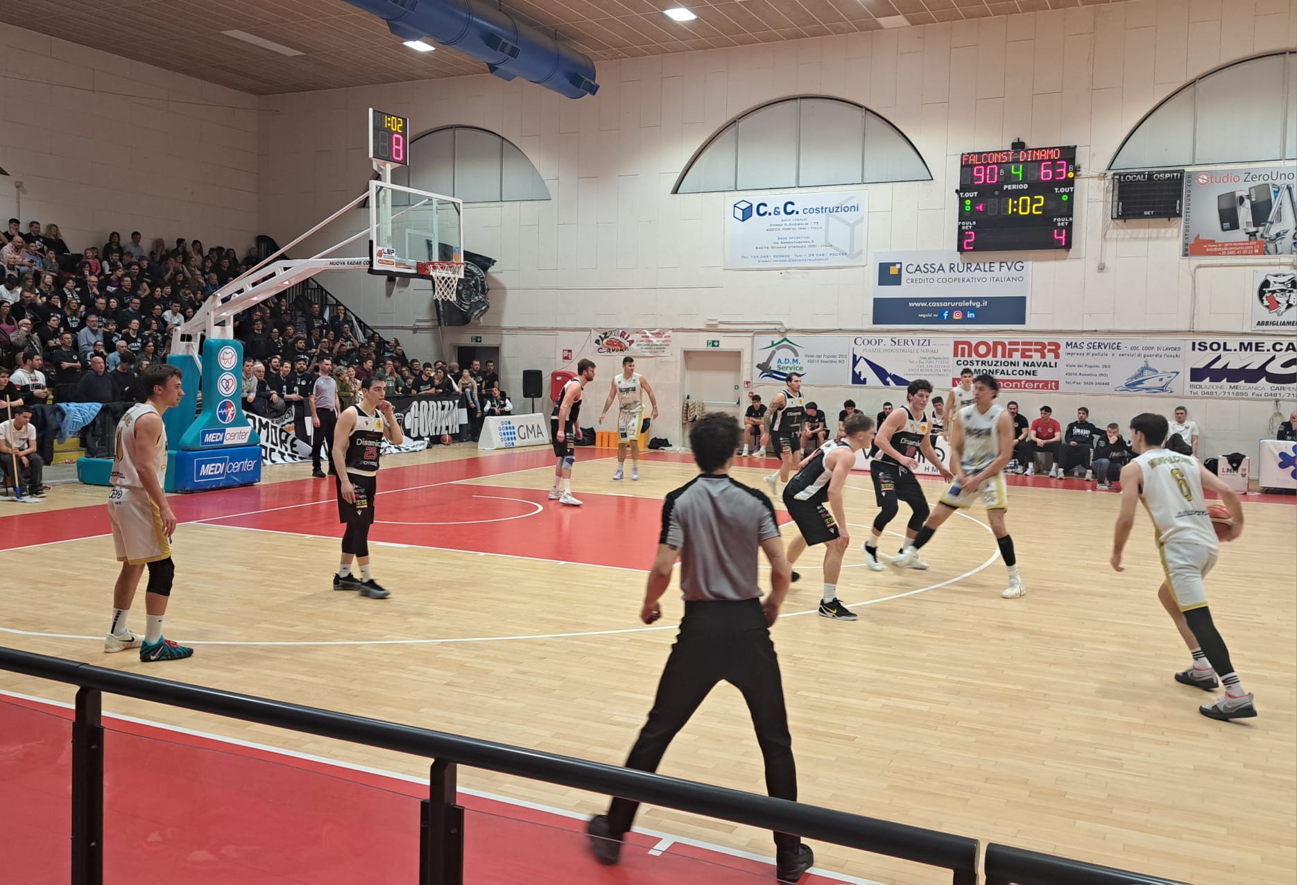 La giornata è stata di grande interesse per i tifosi poiché, oltre al fattore derby, rappresenta un punto importante del calendario: siamo difatti a metà delle 15 sfide del girone di ritorno. Un confronto che non poteva che preannunciarsi acceso e competitivo, anche alla luce del risultato d’andata in casa Dinamo (vittoria dei bianconeri per 83 a 61) e dei rispettivi momenti che le due squadre del Goriziano stanno vivendo in campionato.