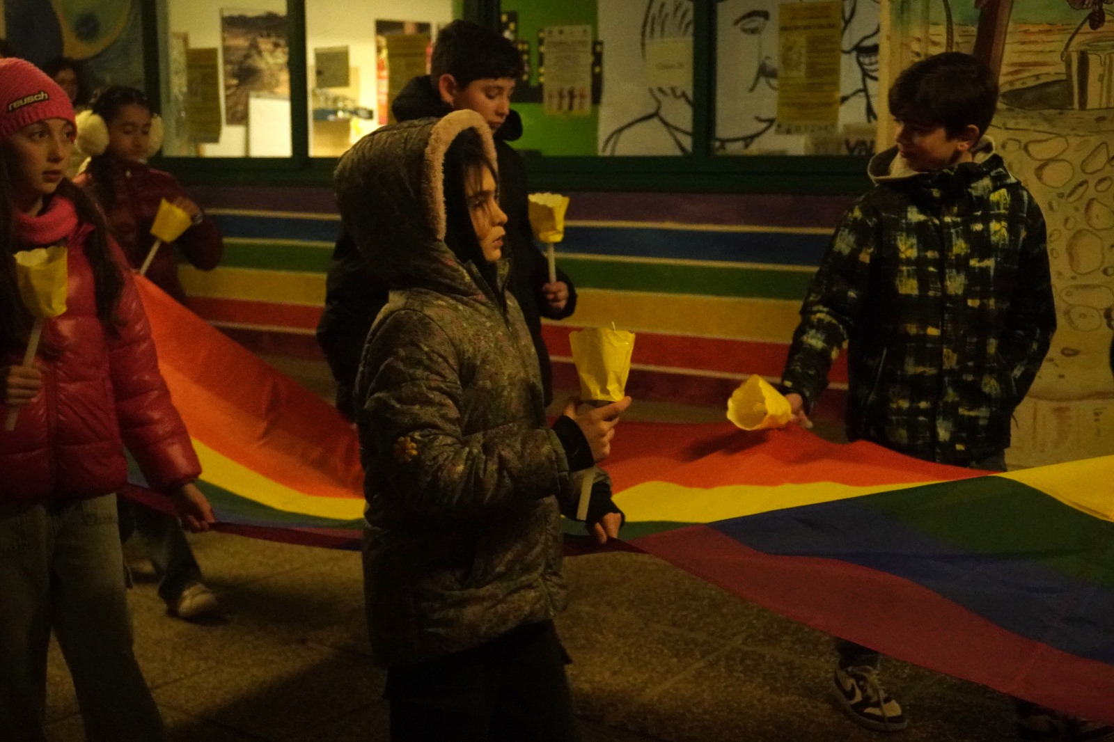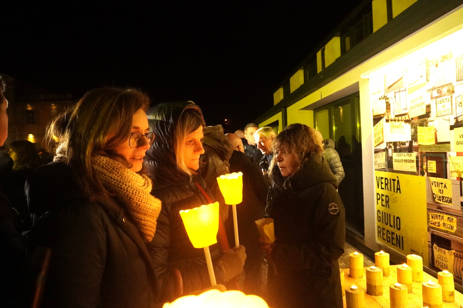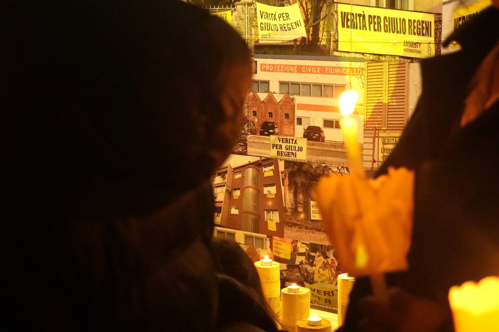 Giunti al piazzale dei Tigli, le lanterne si sono accese una dopo l’altra, illuminando lo spazio e dando al luogo un clima di silenzio e profonda commozione. Al gesto simbolico è stato intonato l’ Hallelujah di Cohen, che ha accompagnato la commemorazione di Giulio e di tutte le vittime di violazioni dei diritti umani.