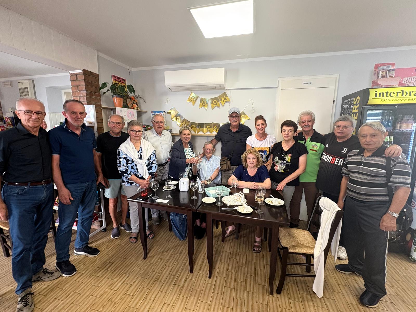Franco Baselli è molto conosciuto e stimato a Perteole e nei paesi limitrofi per la sua affabilità, la generosa simpatia e l’incrollabile fede juventina. Per celebrare i suoi 80 anni, un gruppo di amici ha organizzato una festa a sorpresa allo Spritz-Bar (ex Acli), con regali e torta rigorosamente bianconeri.