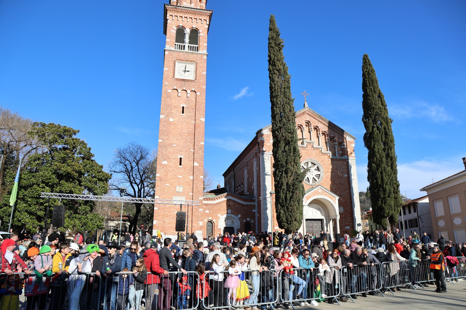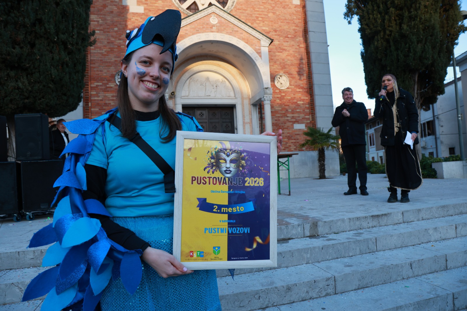 La piazza e le vie di Šempeter pri Gorici si sono trasformate in un vivace teatro di colori, musica e fantasia per l’edizione 2026 del Pustovanje, il tradizionale Carnevale popolare che richiama famiglie e appassionati da tutta l’area del Goriziano. L’evento, promosso dal KŠTM Šempeter-Vrtojba in collaborazione con l’Občina Šempeter-Vrtojba e in sinergia con il pust di Sovodnje e la Slovensko društvo Karnival, si è svolto sabato 21 febbraio, dopo lo spostamento dalla data originaria di sabato 14 febbraio dovuto alle previsioni di maltempo. La festa ha animato Trg Ivan Rob fin dal primo pomeriggio con un programma pensato per tutte le età. Alle 14 i più piccoli hanno preso parte all’animazione dedicata ai bambini, con ogni maschera infantile premiata per il suo spirito creativo. Nel corso del pomeriggio, alle 15.00, si è tenuta la sfilata principale: gruppi mascherati e carri tematici hanno sfilato per il centro della piazza, mostrando costumi elaborati e performance coreografiche. Una giuria ha valutato originalità, creatività e qualità dell’allestimento, consegnando riconoscimenti alle proposte più riuscite. La manifestazione si è conclusa intorno alle 17 con la premiazione dei partecipanti e un momento di festa aperto a tutti, che ha richiamato cittadini di Šempeter, Vrtojba e delle aree limitrofe, consolidando il legame comunitario e la partecipazione intergenerazionale a una tradizione che ogni anno valorizza l’ingegno e la convivialità. La classifica dei gruppi ha visto al primo posto il Turistično društvo Cerje, al secondo posto il Društvo žena Bilje e, infine, il Turistično klub ProDC. Per quanto riguarda i carri in prima posizione lo SKRD Oton Župančič, secondo posto al Kd Briški Grič Števerjan e, infine, terzo posto al KD Sabotin. Fotoservizio di Sergio Marini.
