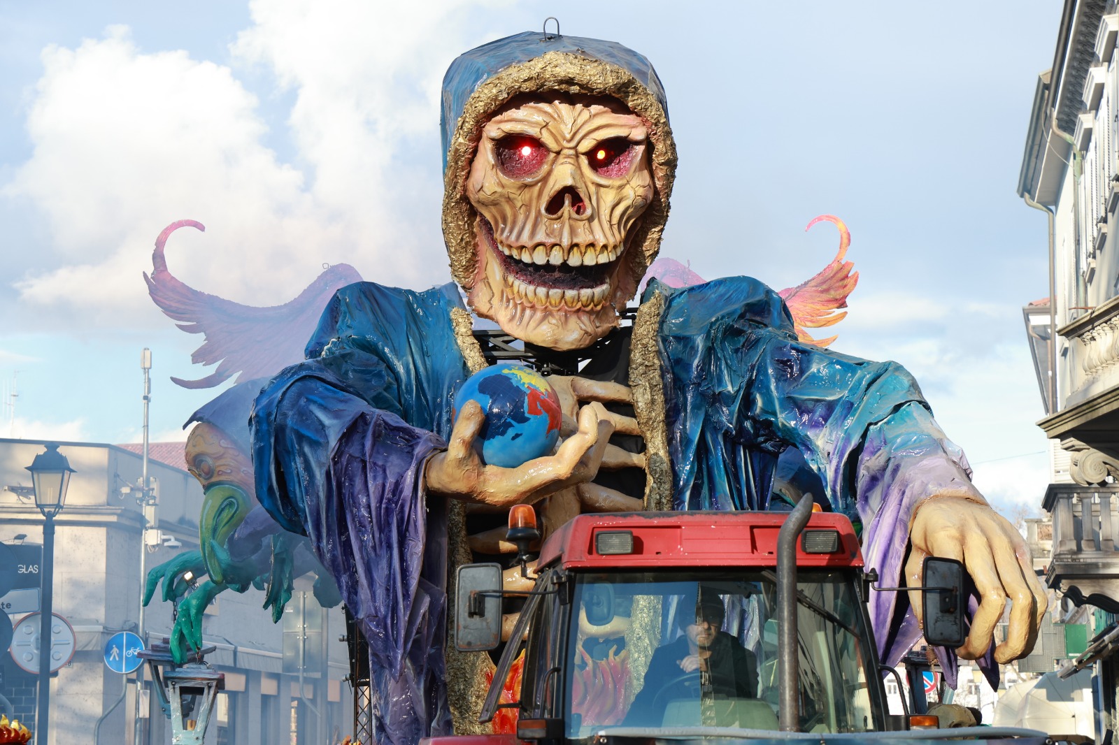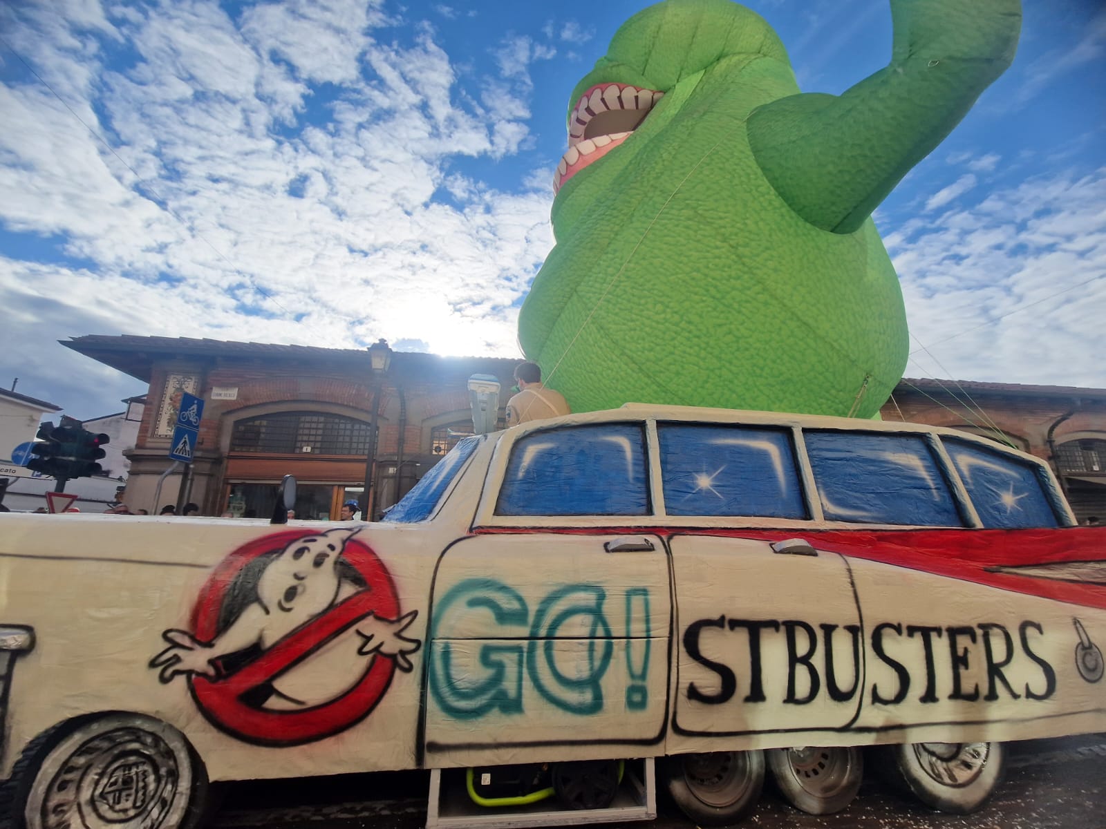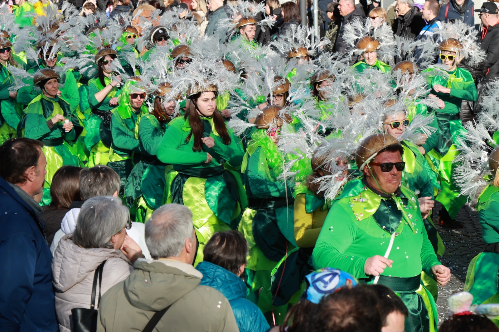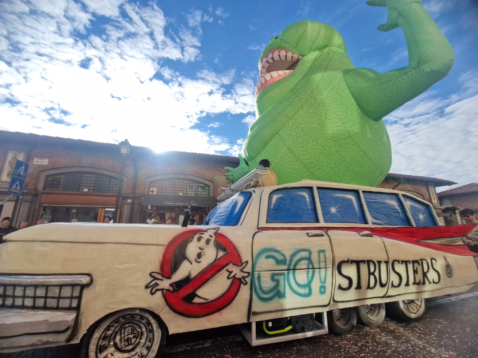 Direttamente da San Pelagio sono sbucati vasi fioriti e farfalle, perché «in un mondo dove tutto sta andando a rotoli abbiamo bisogno di cose semplici e belle». Come i Sette Nani – per l’esattezza trenta – di Colloredo di Prato, presenti con il gruppo allegorico “Fasin Fieste”: «Il nostro scopo è stare assieme e divertirci – assicura il referente Gabriele Del Bianco – condividendo una passione che comincia nel momento in cui decidiamo il tema e lo realizziamo in legna e cartapesta per passare le domeniche». Un carretto di quattro metri seguito dal corpo di ballo con Grandangolo, Trampolo, Birbantolo, Baffolo o il Nano single, a precedere il carro di otto metri con un nano che esce dalla miniera reggendo un diamante. L’associazione culturale Skala di Gabria si presenta invece con Aladino e il motto “Aladin, risolvi ‘sto casin!!” contro «guerre, crisi e occupazioni» di cui «sinceramente gavemo pieni i maroni». Su in cima al carro è montata la lampada, da cui sporge proprio lui, Aladino, che con cuffia da nuoto azzurra e braccia possenti è pronto a realizzare la magia. Brioso e danzante è invece “Blu” di San Floriano del Collio, che fra pappagalli e squadre di ballerini presenta uno strabiliante Carnevale di Rio. Dai pappagalli passiamo agli uomini delle caverne, scienziati ed esploratori, con “La storia del mondo” di Turriaco, seguito dagli attualissimi acchiappa fantasmi di “Go! Stbusters 2025” di Savogna d’Isonzo, che a suon di musica dei “Ghostbusters” ballano dietro a una sorprendente riproduzione del Go!Pharus, ammonendo: «Gorizia ha dimostrato di saper brillare, non lasciamo che finita la festa siano i fantasmi a comandare».