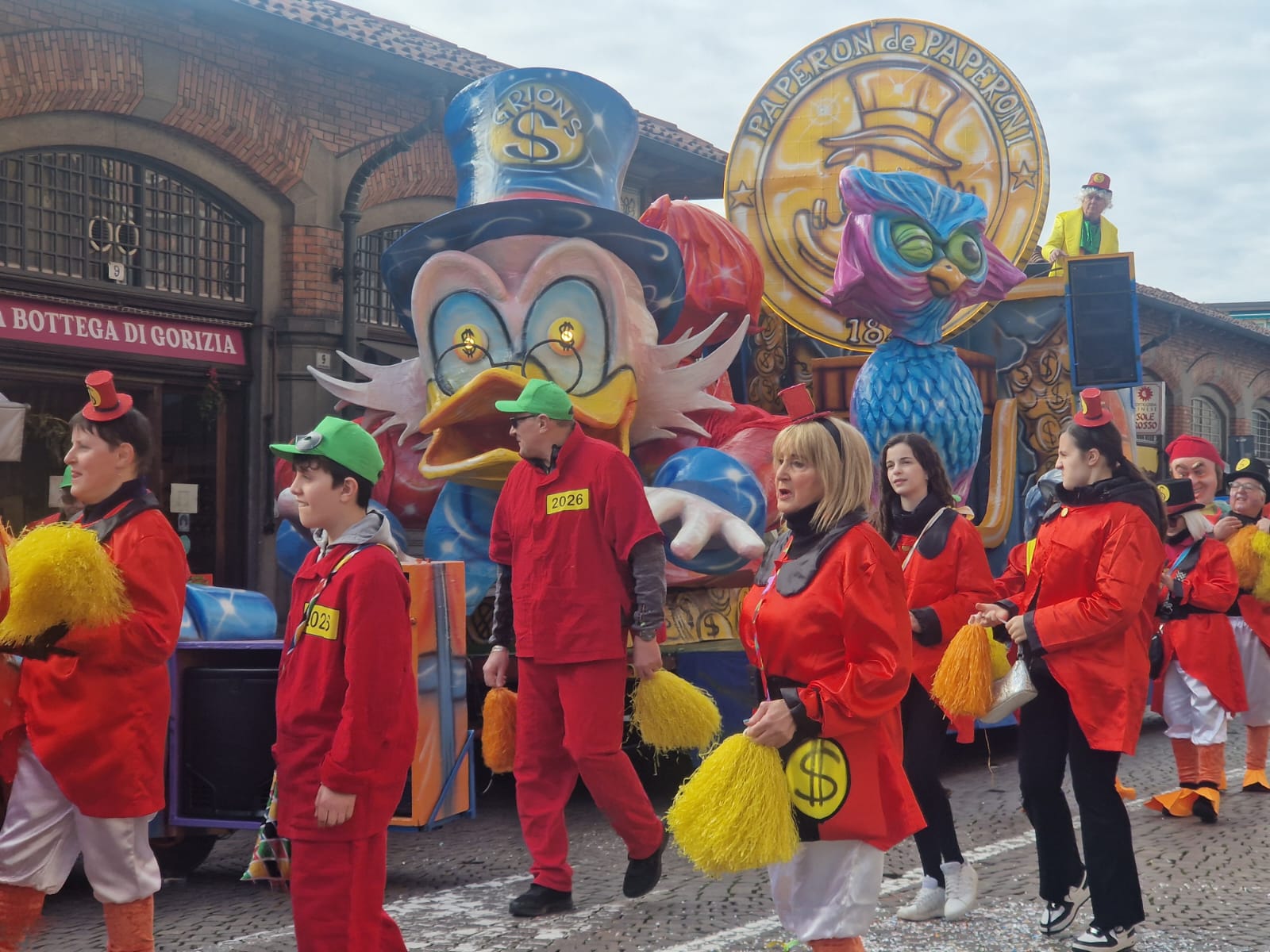 «Da sempre ci supporta l’associazione nazionale carabinieri dell’ispettorato di Trieste – rimarca il presidente della Pro Loco Giorgio Lorenzoni - e abbiamo anche rafforzato la sorveglianza sanitaria con ambulanze oltre che squadre. Negli anni ci siamo formati con la certificazione antincendio, BLSD e primo soccorso, attenzionando sempre più queste problematiche». Due i presentatori ai quali è stata affidata l’animazione: Eugen Ban e Lorenzo Cozzutto, che hanno caricato con ulteriore energia l’atmosfera. Ad aprire le danze, nel vero senso della parola, sono stati i ballerini della scuola Movartex - che insieme alla Dinamo hanno portato a Gorizia la civiltà romana e le divinità - subito seguiti dai personaggi della Walt Diseny di Grions del Torre, fuori concorso: «Il nostro carro - spiega Ermano Beltrame, rappresentante del gruppo “Giovedì Grasso” di Povoletto – lo abbiamo realizzato in due mesi e mezzo di lavori. L’obiettivo è portare un po’ di sorrisi, perché al giorno d’oggi ce ne sono ben pochi». Oltre una cinquantina i figuranti che ballano fra Paperon de Paperoni, iene e avvoltoi mentre la celebre “numero uno” ruota sul perno: «Anche se Grions è una frazione di 400 abitanti – precisa - sono 27 anni che partecipiamo alle sfilate, siamo stati pure in Slovenia, Croazia e Serbia».