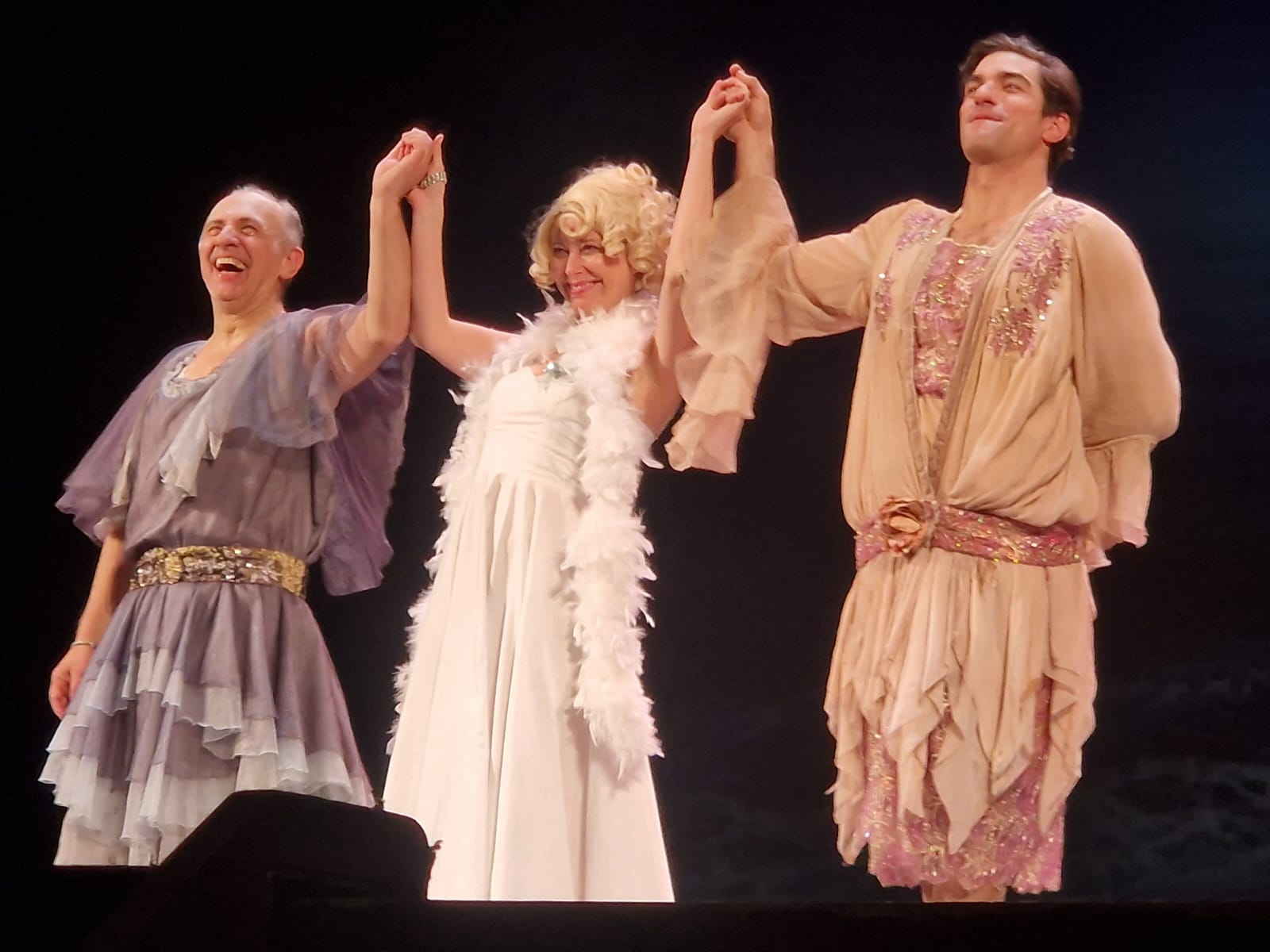 Allievo di Giorgio Strehler è invece Gianluca Ferrato, che dal monologo si sposta al teatro di compagnia facendo nel finale coppia con il miliardario Oscar (Francesco Laruffa). «È stato sempre un attore monologante – precisa – ma con me è diventato attore di complesso. Sa essere comico e al contempo drammatico, e in questo ruolo è divertentissimo». Risate assicurate sin dalla scena esilarante nelle cuccette del treno, con l’intercalare del «Sono una donna» o la complicità femminile che va evolvendosi fra gag e colpi di scena fino al lieto finale con il motoscafo piatto. Una conclusione in cui, seppure «nessuno è perfetto», Gleijeses stupisce e commuove rasentando la perfezione. Del resto, lo stesso regista ebbe modo d’incontrare Wilder appena adolescente: «Quando avevo diciassette anni feci la comparsa in un suo film – racconta - dove recitava anche Jack Lemmon». La pellicola era la commedia romantica “Che cos’è successo tra mio padre e tua madre?” (1972) ambientata a Ischia, e la parte venne girata sull’imbarcazione per raggiungere l’isola: «Mi ritrovai su quest’aliscafo in cui si girava questa scena – prosegue - dove due geni assoluti si divertivano girando in tutta tranquillità quelle poche battute che bisognava fare, ed era evidente la loro gioia nel lavorare senz’alcuna tensione insieme alla troupe. A un certo punto si sedettero davanti a me e li sentii confabulare. Sentivo ripetere più volte la parola “rabbit”. Allora chiesi al direttore di produzione di cosa stessero parlando. “Stanno discutendo su dove andare a mangiare il coniglio all’ischitana” – riporta con ironia – e questi erano quei due geni».