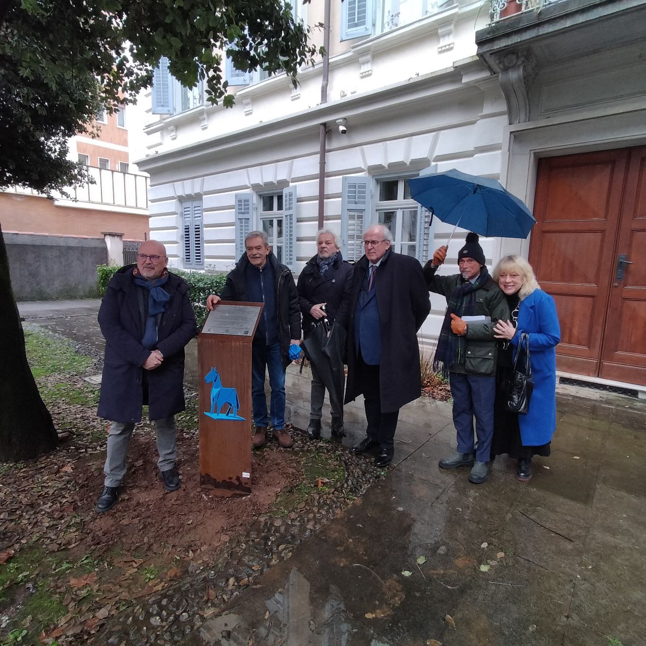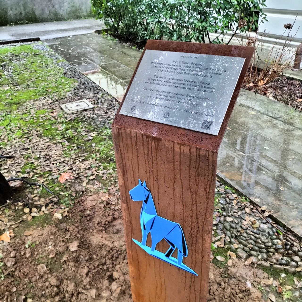 Uscendo dalla sede della Regione di Corso Italia, al termine della conferenza stampa è stata inaugurata una targa proprio a memoria di Franco Basaglia ricordato perché la sua decisione di lasciare Padova per venire a dirigere l’ospedale psichiatrico di Gorizia «è l’avvio di un cammino che cambierà il modo di intendere la sofferenza mentale e di curare le persone che nella loro vita fanno l’esperienza del disturbo mentale». La stele, impreziosita dalla silohuette blu di Marco Cavallo, è stata realizzata dal Comune in collaborazione con il Rotary Club e il luogo in cui è stata collocata è stato scelto a memoria della residenza di Basaglia dal 1961 al 1968. Come ha spiegato Franco Perazza, promotore dell’iniziativa, lo psichiatra veneziano ha infatti abitato in un appartamento al terzo piano del palazzo della ex Provincia, ente che a quel tempo gestiva appunto l’ospedale psichiatrico di via Vittorio Veneto.