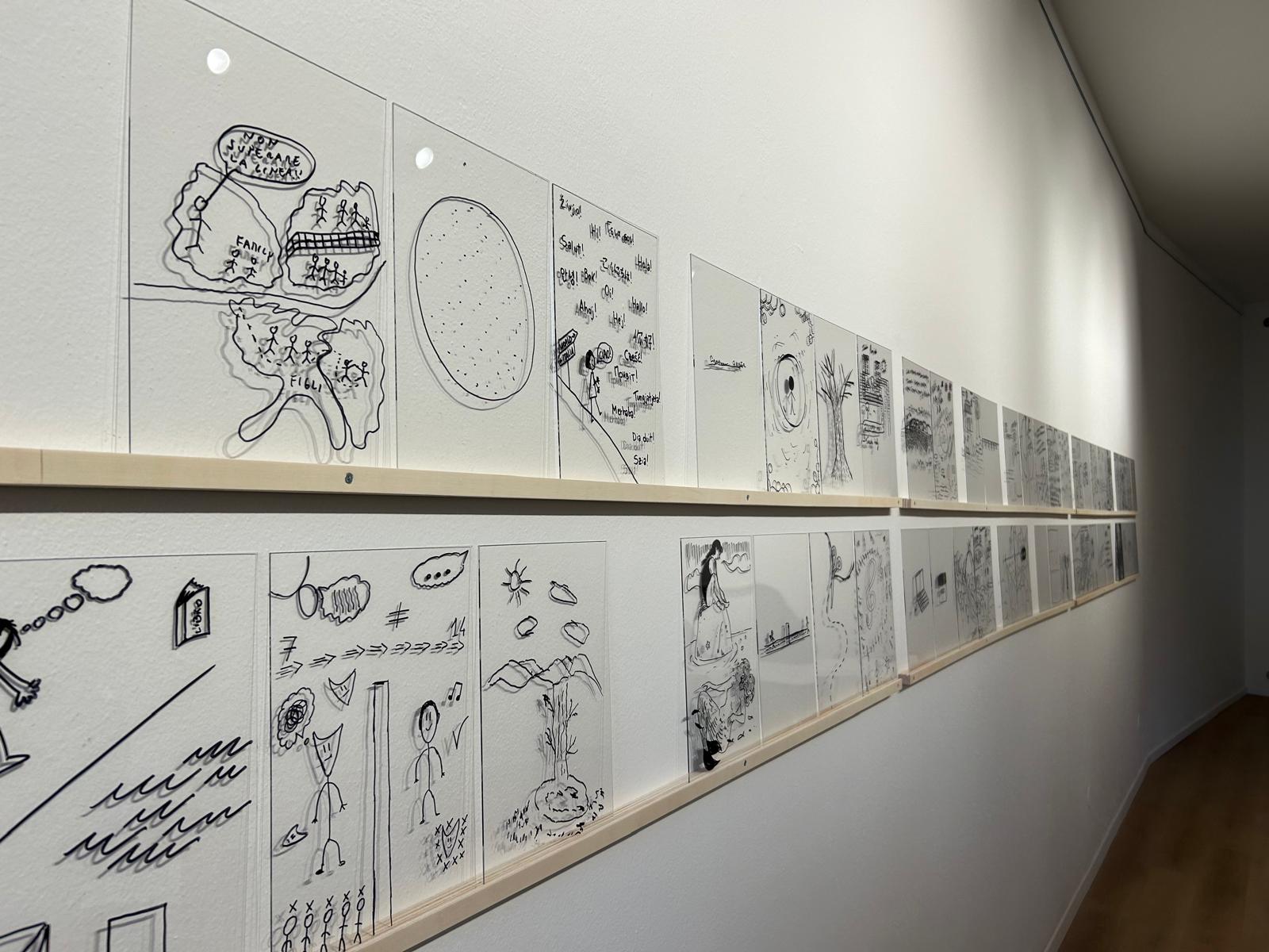 Questa, infatti, è stata la prima fase dell’iniziativa “In ascolto”. Grazie ai workshop e incontri dedicati nei vari comuni partner ogni partecipante è stato libero di esprimere in modo autentico e personale il proprio concetto di confine, tramite parole, disegni, emozioni. Nella seconda fase è subentrato l’artista che ha rielaborato il materiale raccolto, trasformandolo in linguaggio artistico attraverso l’arte contemporanea. «Ogni workshop è stata una formazione prima di tutto per me – ha raccontato Matteo – dove ho fatto un lavoro di sottrazione di me stesso cercando di lasciare spazio ad un’empatia che fosse sostanza e che ci portasse poi ad un risultato che è quello che vedete esposto. Alla fine di ogni incontro, inoltre, abbiamo chiesto ai partecipanti una parola che descrivesse ciò che avevamo fatto e quelle parole sono state montate senza continuità in un video che è posizionato alla fine del percorso espositivo».