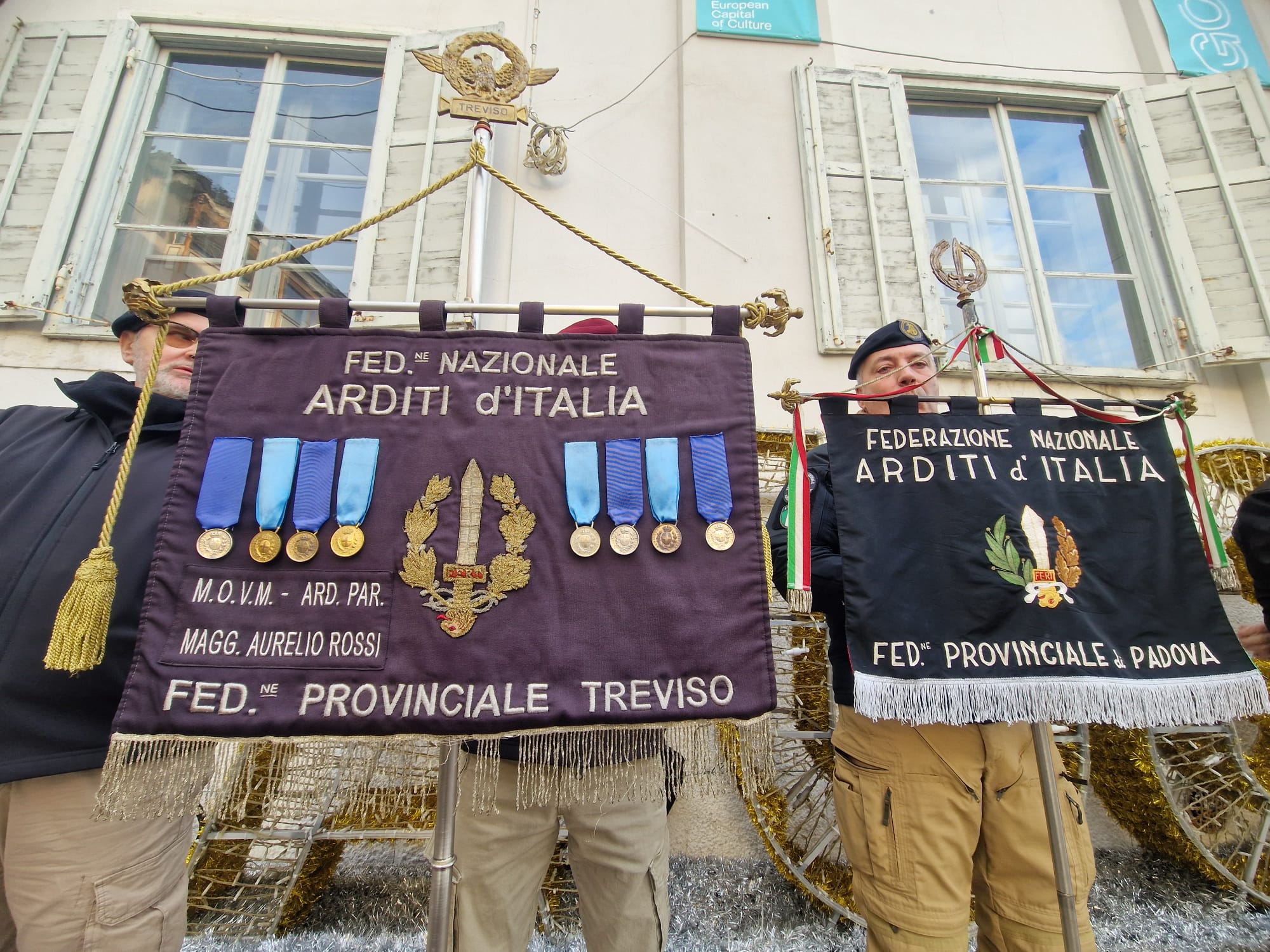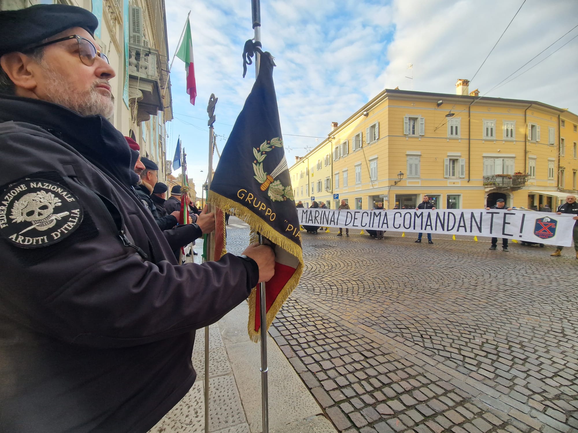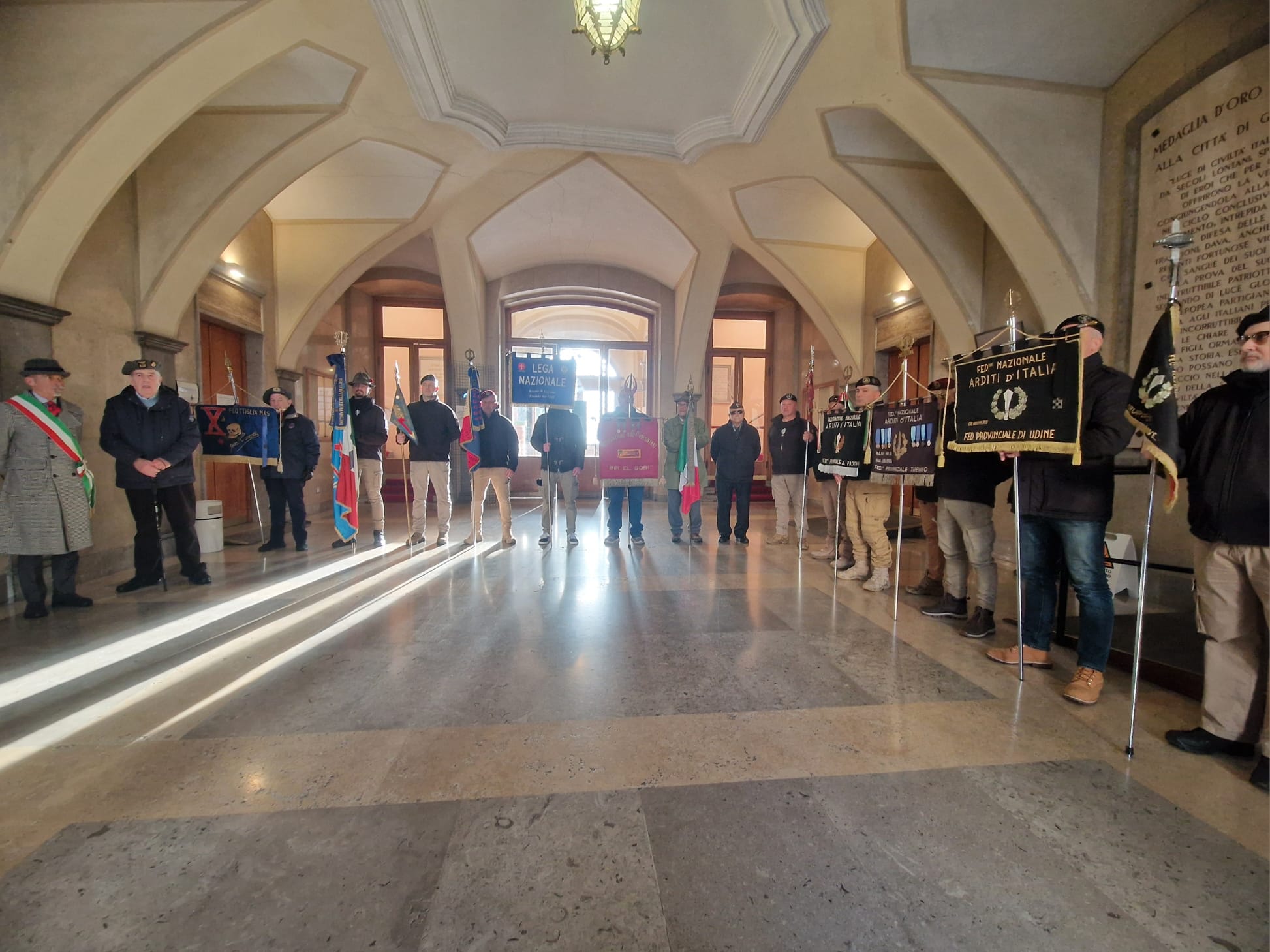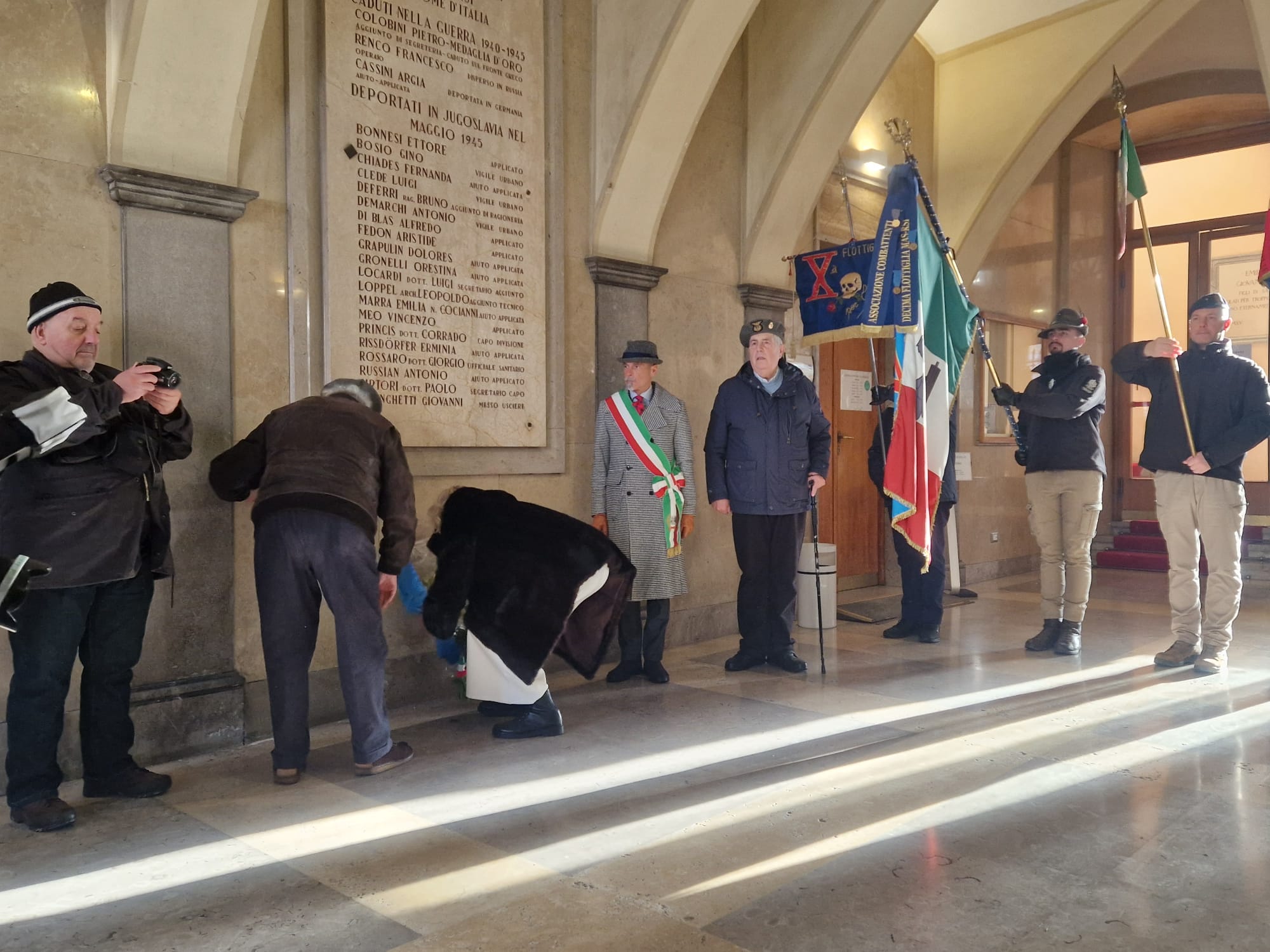 Le mitragliatrici nella neve, il freddo pungente ad attanagliare il battaglione Fulmine, inviato a Tarnova dopo breve formazione a La Spezia. Stava a presidiare l’avamposto, ma finì accerchiato da truppe jugoslave e i superstiti vennero recuperati dalle colonne italotedesche di Gorizia. Per ricordare la battaglia di Tarnova del gennaio 1945, oltre che commemorare i dipendenti comunali «deportati dagli jugoslavi» a maggio dello stesso anno, anche in questo 2026 l’associazione XMas ha voluto portare un tributo nel municipio del capoluogo isontino. Ad accoglierli è stato però quello che Marino Clemente di ANPI definisce «un episodio folcloristico», in quanto prima delle nove di oggi - sabato 17 gennaio – mani ignote hanno scaricato una secchiata di liquami, di colore marrone, all’ingresso del comune, e solo dopo aver ripulito i sampietrini si è potuto procedere con la manifestazione.