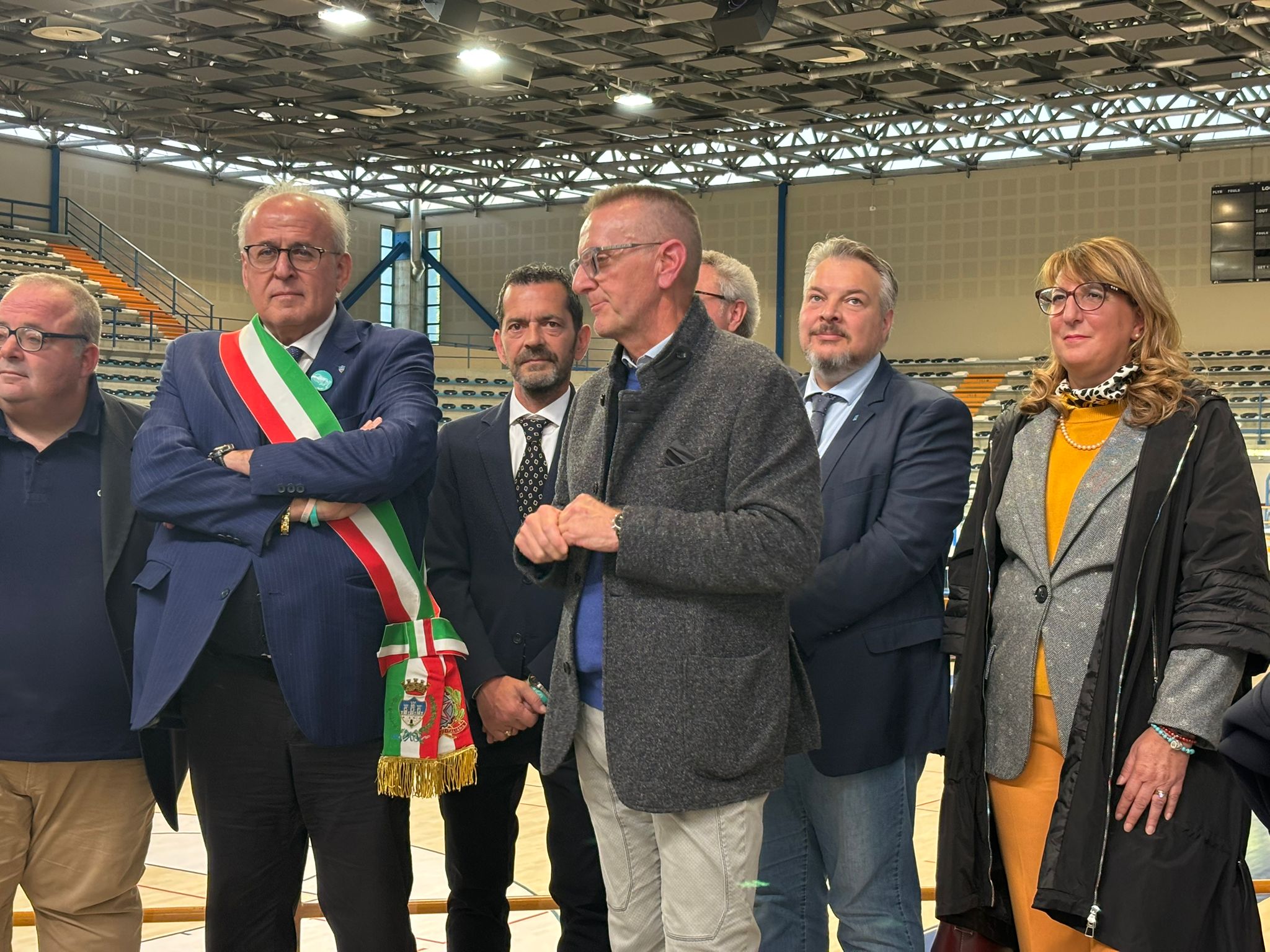 Ha preso poi la parola l’Assessore ai lavori pubblici Sara Filisetti «Abbiamo voluto restituire alla città un palazzetto capace di ospitare eventi sportivi, concerti e spettacoli, rendendolo più accogliente e funzionale». Ha poi continuato illustrando quali sono stati i lavori. I primi interventi hanno riguardato l’accessibilità del piano parterre, studiata per consentire l’ingresso agevole di mezzi e attrezzature sceniche, e il rinnovamento degli impianti, con particolare attenzione all’insonorizzazione. Per permettere l’organizzazione di concerti ed eventi, è stato realizzato un impianto audio di alta qualità e un sistema di illuminazione versatile, adattabile sia agli eventi sportivi sia agli spettacoli.