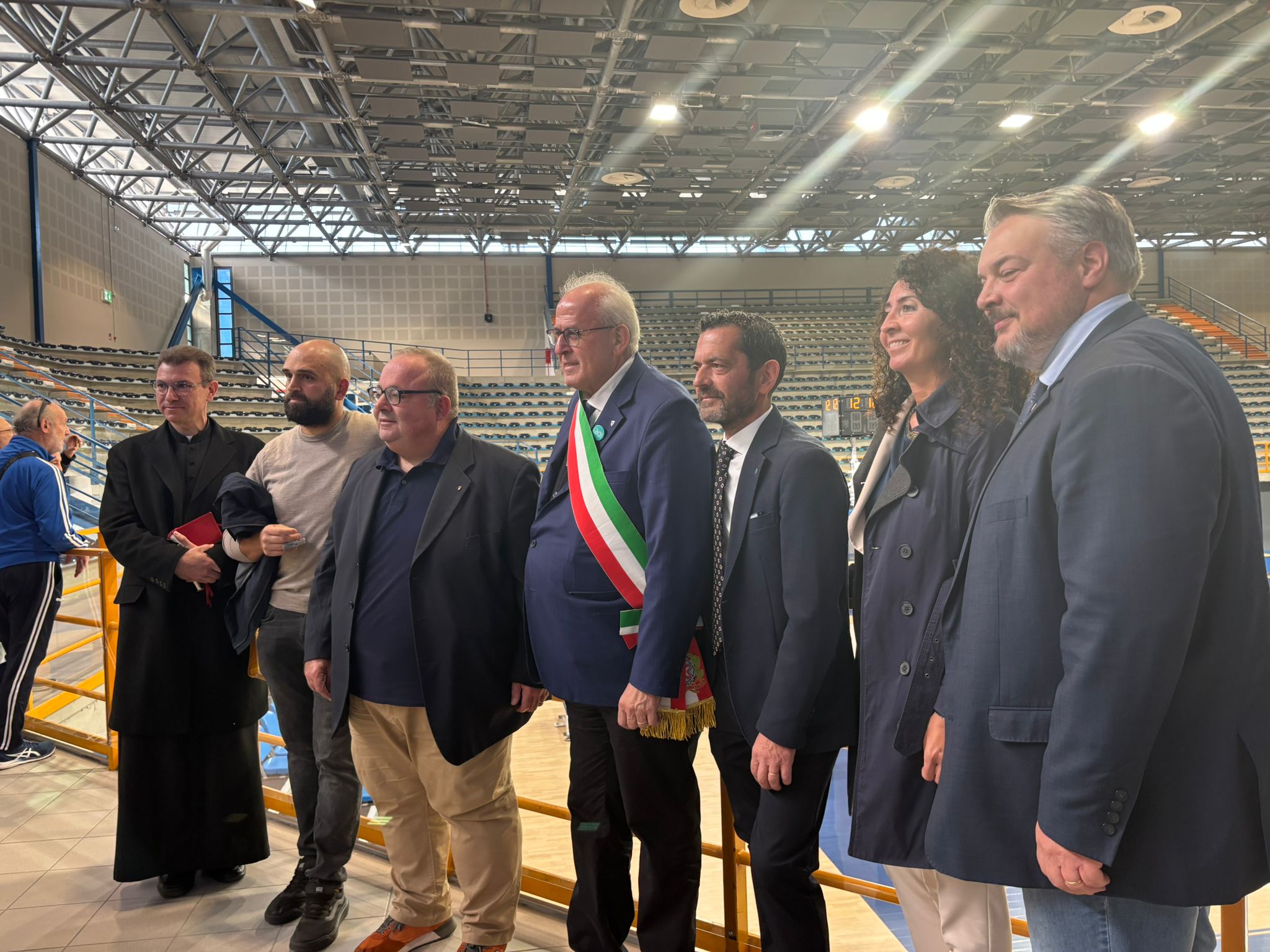 Dopo il momento di benedizione e il taglio del nastro, tutti i presenti si sono recati all’interno del palazzetto per ammirare da vicino le migliorie realizzate.