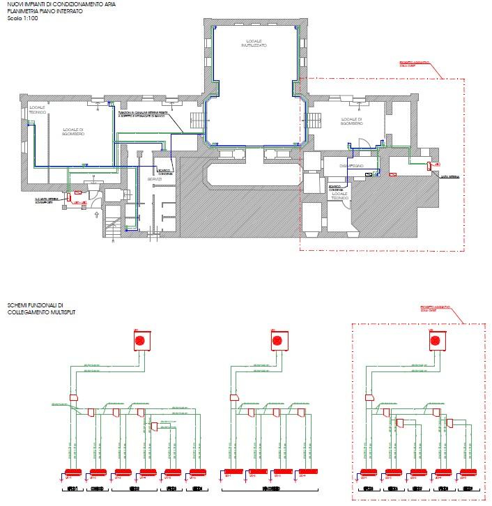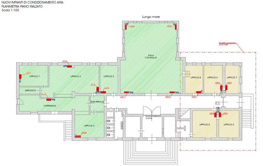 Questi impianti, con funzione sia di riscaldamento che di raffrescamento, saranno indipendenti dal sistema di riscaldamento esistente ed in particolare potranno essere attivati anche in orari diversi da quelli ordinari di lavoro. Tale condizione risulterà particolarmente utile per la Sala Consiglio, che potrà essere utilizzata anche ad esempio per riunioni ed iniziative in orario serale senza richiedere l’attivazione “fuori orario” della centrale termica.
