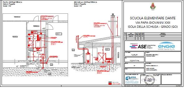 Per la scuola elementare Dante Alighieri i lavori consistono nella sostituzione del generatore di calore esistente con un nuovo generatore di calore a condensazione completo di bruciatore modulante e nella realizzazione di un nuovo condotto di evacuazione fumi, la realizzazione di un nuovo sistema di monitoraggio e di controllo della centrale termica maggiormente efficiente ed in grado di controllare i vari componenti dell'impianto, l’adeguamento dei quadri elettrici della centrale termica e l’installazione di un sistema dedicato per la produzione Acqua Calda Sanitaria, con alimentazione a gas metano. Inoltre, è prevista l’installazione di un nuovo impianto di riscaldamento e condizionamento aria che prevede la suddivisione dell’edificio in più zone.