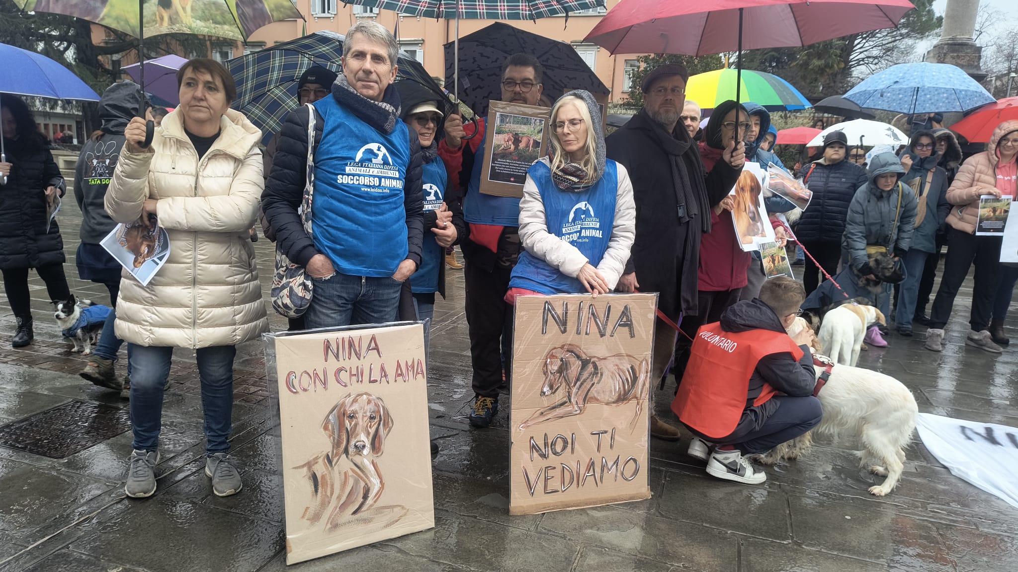 Chiari gli slogan: «Chi maltratta gli animali non deve detenere animali», e, soprattutto, «salviamo Nina», un mantra ripetuto da vari cartelli portati a mano da numerose persone che si sono presentate assieme ai propri amici a quattro zampe. Un corteo silenzioso, come detto, così come richiesto dagli organizzatori.