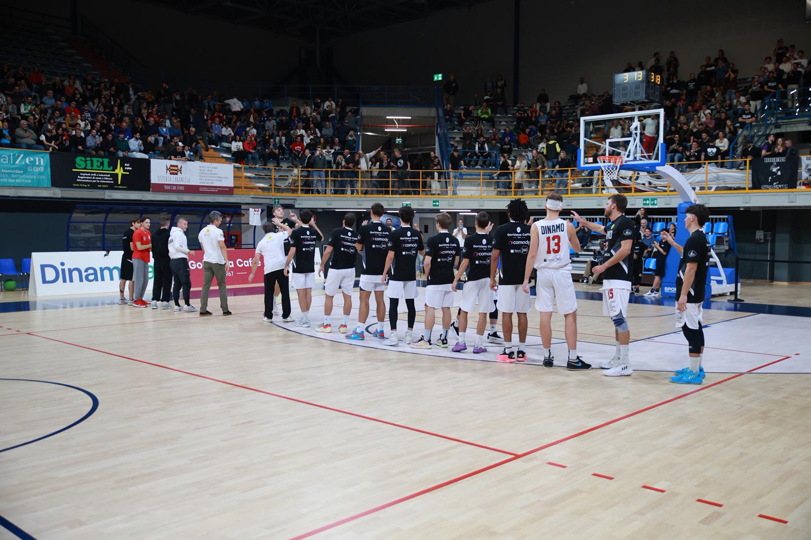 La festa Dinamo è stata coronata dalla vittoria della formazione casalinga contro l’Amica Chips Stings Mantova, dopo una partita condotta dai bianconeri e minacciata da un pesante parziale 10-0 della formazione avversaria che ha portato la partita in parità a pochi minuti dalla fine. La sfida si è conclusa dopo un tempo supplementare, in cui la Dinamo è stata in grado di tenere i nervi saldi e a chiudere con il punteggio di 86-81.