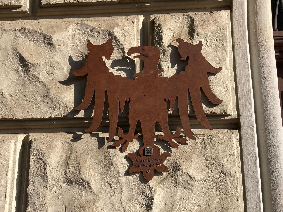 «La nostra è una città multilingue e multietnica. àˆ l'unico luogo in tutta Europa in cui si parla in italiano, in friulano, in sloveno e in tedesco. I simbolismi contano eccome, quindi io ringrazio Arlef, amministrazione regionale e le associazioni del territorio, che insieme al Comune hanno concorso a rimarcare la friulanità del nostro territorio attraverso l'apposizione di quest'aquila», ha sottolineato il sindaco Rodolfo Ziberna, affiancato dall'assessore alla Tutela delle identità linguistiche, Maurizio Negro. Alla presentazione sono intervenuti anche i rappresentanti dei sodalizi promotori e di vari sodalizi. Tra questi William Cisilino, direttore di Arlef, Gianni Bressan, alla guida della consulta delle associazioni di Lucinico, Renzo Medeossi e Guido Germano Pettarin della Filologica friulana. Hanno partecipato anche Elena Iuri, di City ADV, che coordina la realizzazione dell'iniziativa, e l'autore del manufatto, il designer Stefano Borella. Al progetto hanno aderito 130 comuni del Friuli: a ognuno è stata donata un'opera artistica da posizionare all'esterno di un edificio rappresentativo o in altro luogo di interesse storico-culturale.