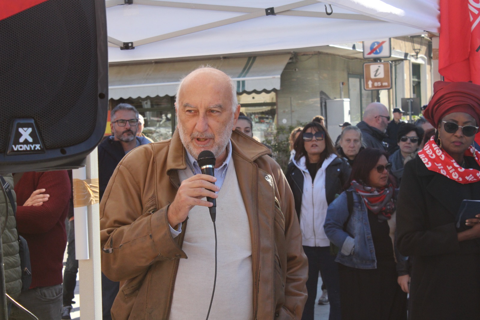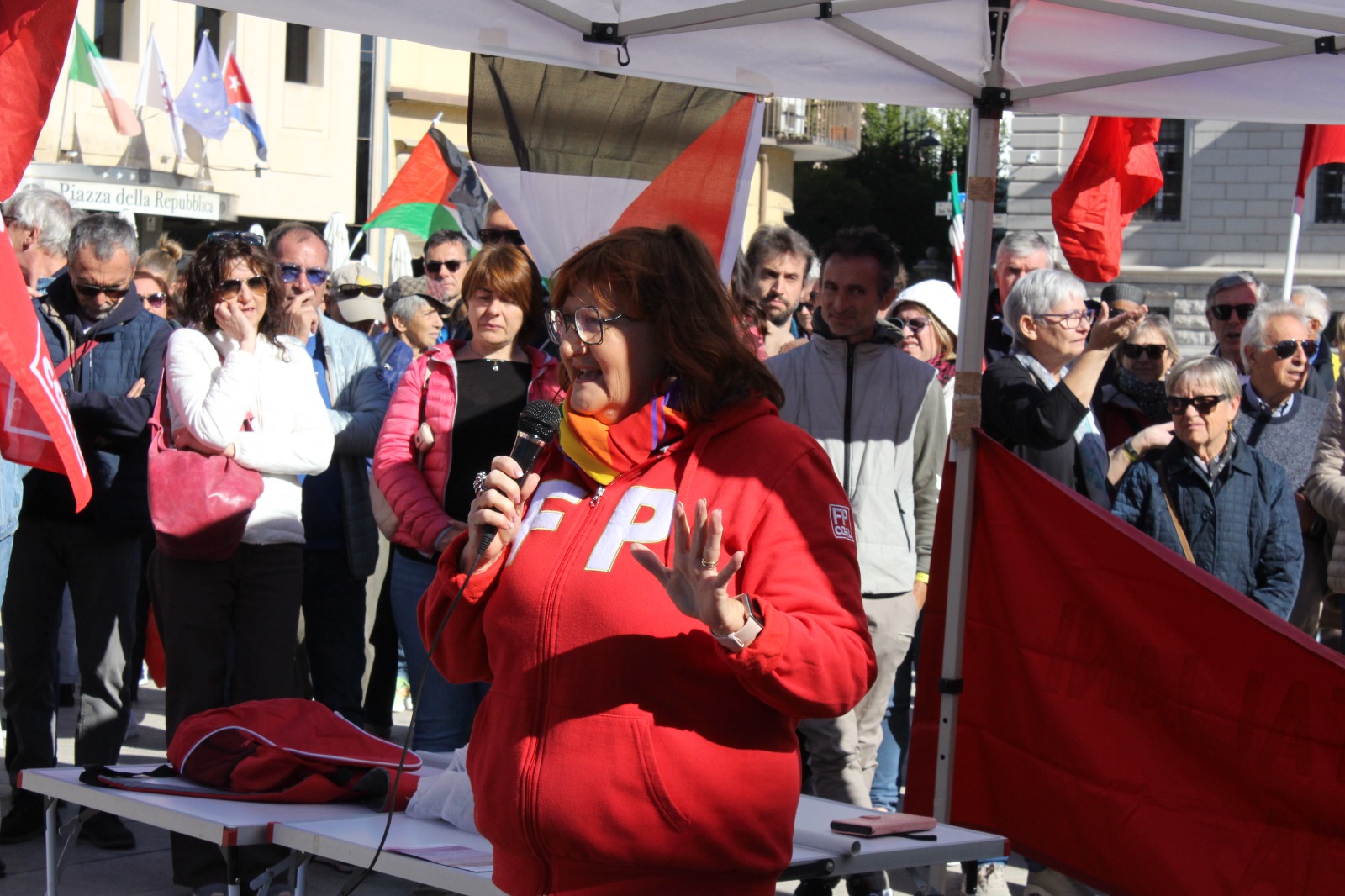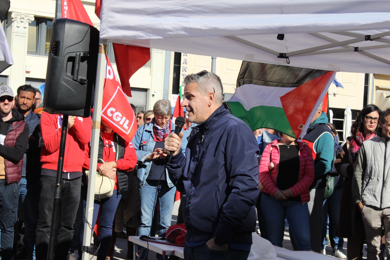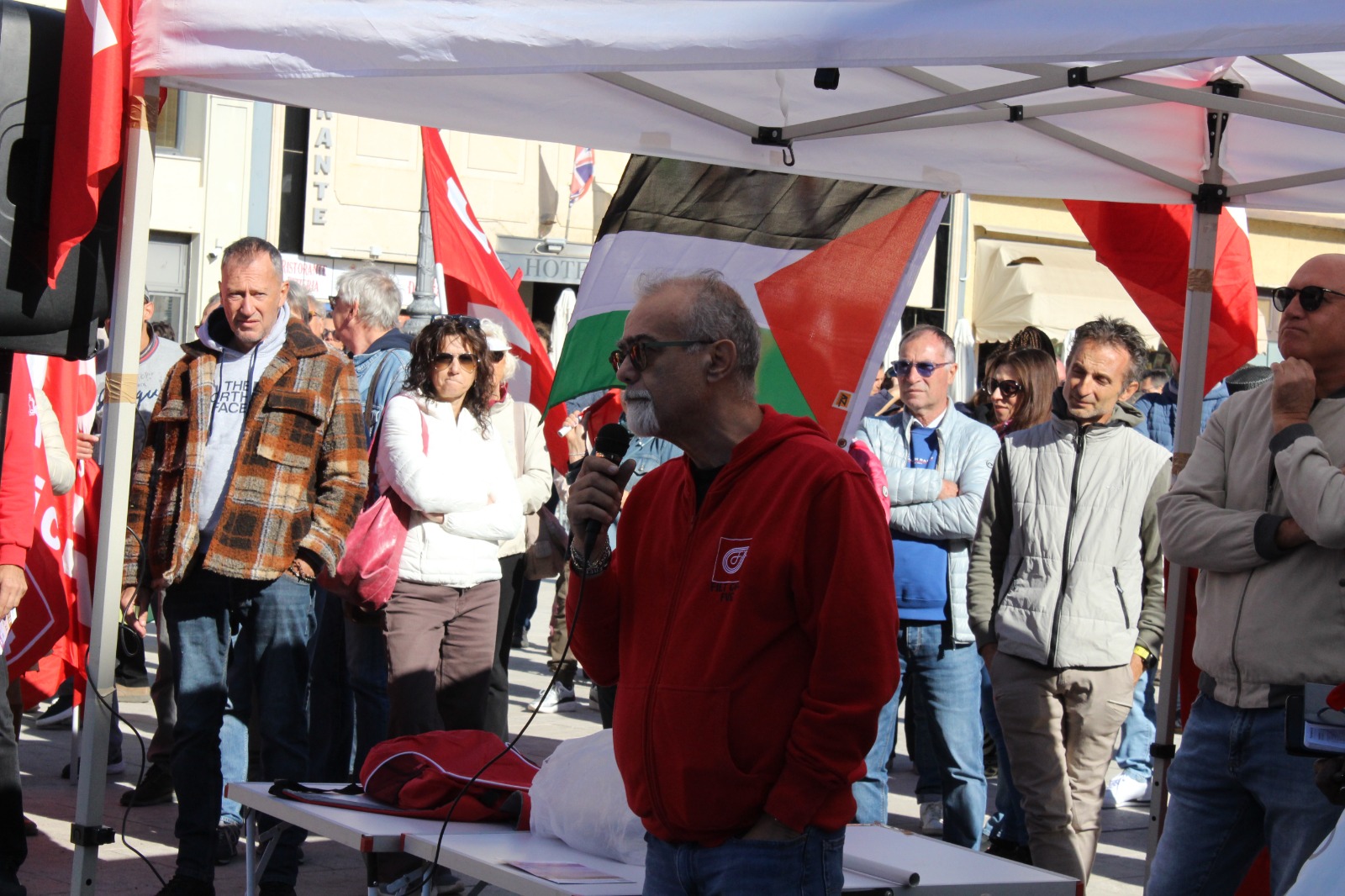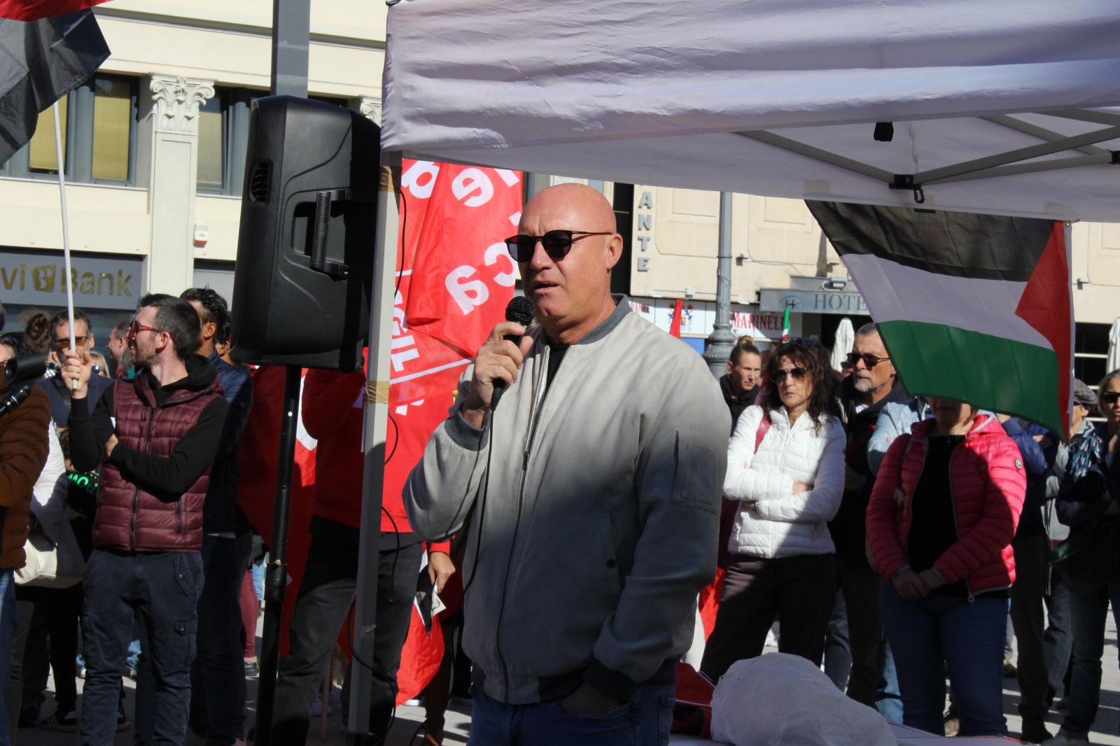 A parlare anche Moreno Luxich della FIOM: «Siamo tutti qui radunati per portare consapevolezza su cosa sta accadendo in quelle zone di continua guerra».